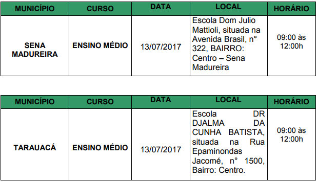 1.3 O PROCESSO SELETIVO visa ao preenchimento das vagas ofertadas para os municípios de Cruzeiro do Sul e Taraucá, conforme demonstrativo abaixo: