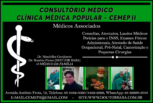 Será inaugurado hoje em Tarauacá, a partir da 9 horas, o Consultório Médico Popular do Doutor Baba, localizado na ALAMEDA ANA ESTER, ao lado do hotel Pró-Link, nº. 79, Centro, de Tarauacá, com atendimento médico todas as sextas-feiras, com preços populares.
