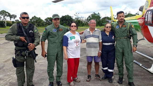 Equipes da Sesacre junto com a defesa civil, foram no helicóptero harpia 1 fazer o resgate.
