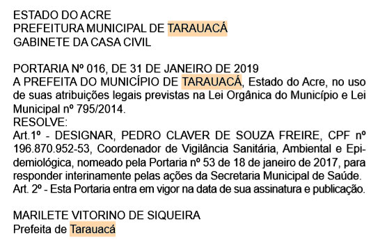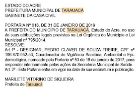 O município de Tarauacá tem um novo Secretário de Saúde. Trata-se do Técnico em Radiologia Pedro Cláver Freire. Claver tem 52 anos, é divorciado, funcionário Sesacre ha 35 anos e trabalha também na secretaria municipal de saúde.