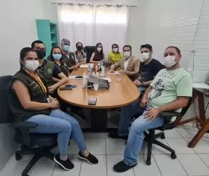 em reunião com aDireção do Hospital, Gerência da Maternidade e Vigilância Sanitária Estadual