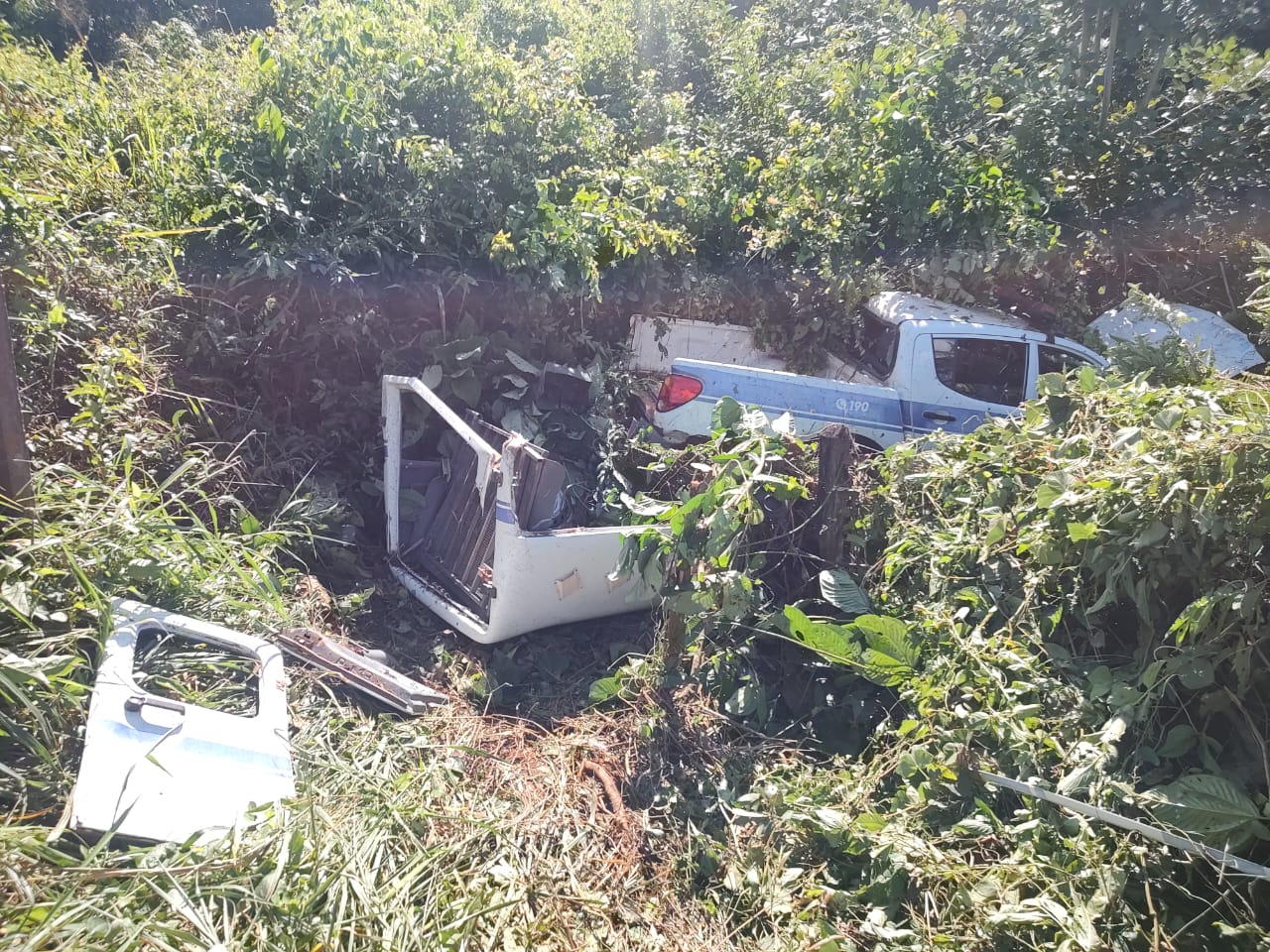 A troca de tiro entre PM e bandidos, no trevo da cidade de Acrelândia, fez com uma viatura da guarnição capotasse.