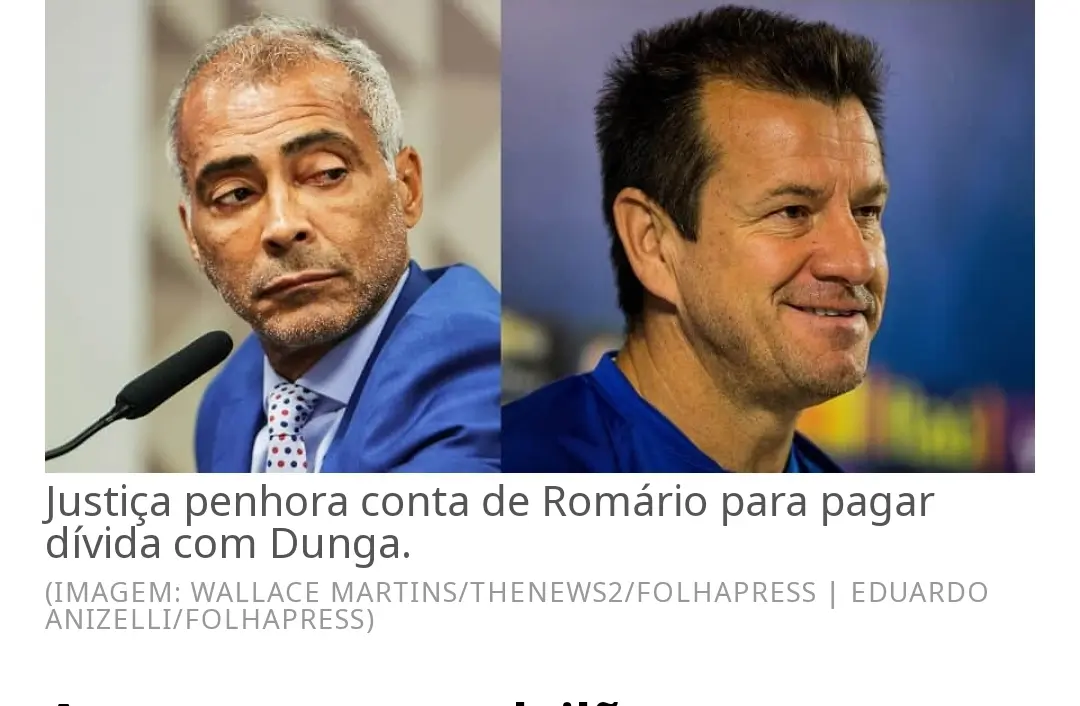 A Justiça do DF bloqueou pouco mais de R$ 3 mil da conta do senador Romário em razão de uma dívida com Dunga. Ambos são ex-jogadores da seleção brasileira e conquistaram, juntos, o tetracampeonato em 1994.