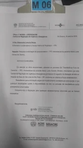 Em resposta oficial datada de 24 de abril, a Central de Regulação de Urgência e Emergência do Acre confirmou que segue no aguardo da liberação do leito e que o caso está sob monitoramento constante. No entanto, não há previsão concreta para a transferência. A família agora espera por uma ação mais célere das autoridades. “Não estamos pedindo o impossível. Estamos pedindo para ela viver”, desabafou Jaqueline.