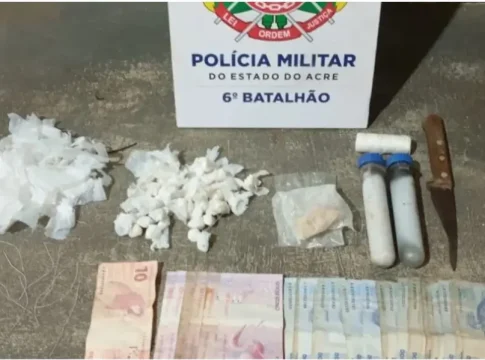 Durante a abordagem, os policiais viram droga sendo arremessada por uma das janelas da casa. No local, identificaram o homem como autor da agressão e do tráfico. O suspeito foi preso em flagrante.