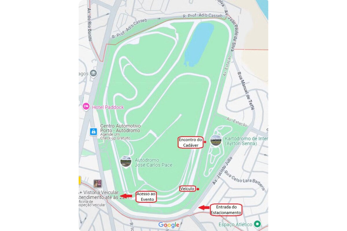 Mapa mostra trajeto feito por empresário antes de morrer em Interlagos