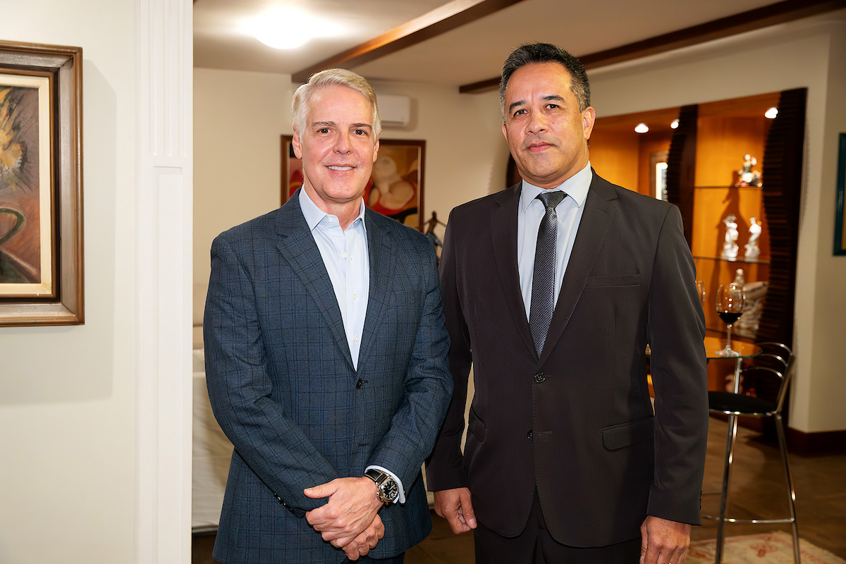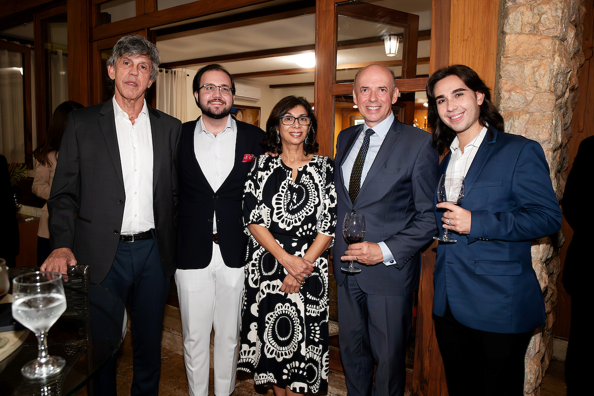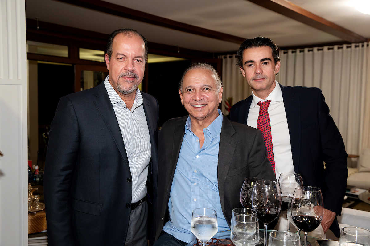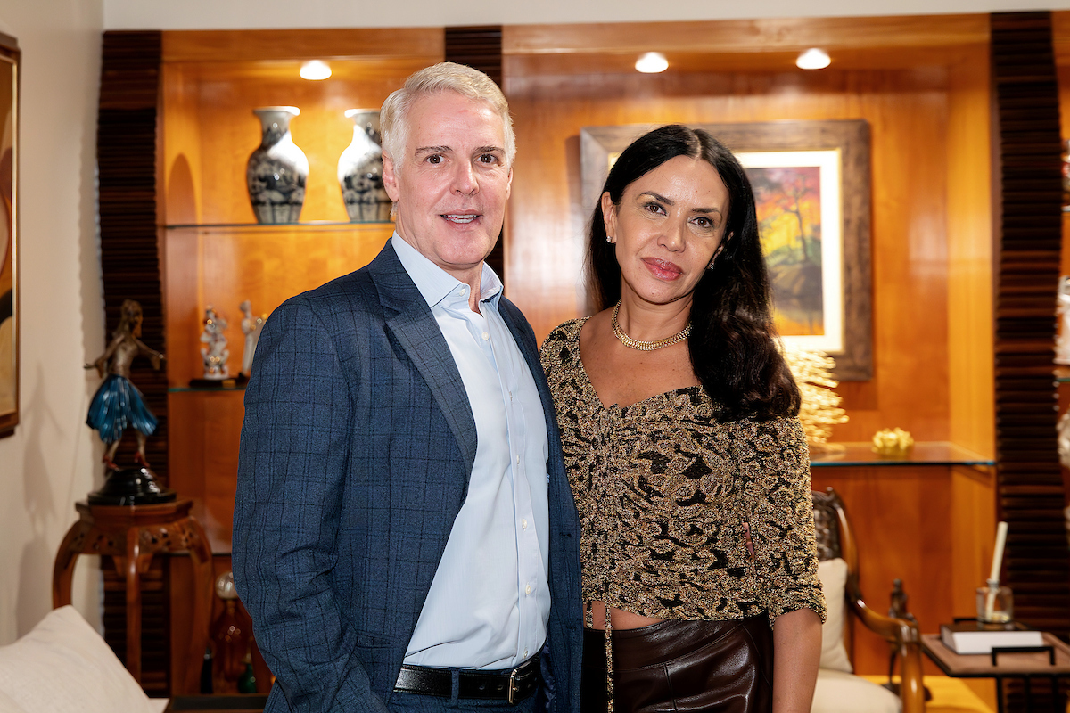 O casal anfitrião orquestrou uma noite de massas, vinhos e música ao vivo em contemplação ao embaixador. Também decoraram os ambientes com belíssimas flores, que deram um toque sofisticado ao encontro.