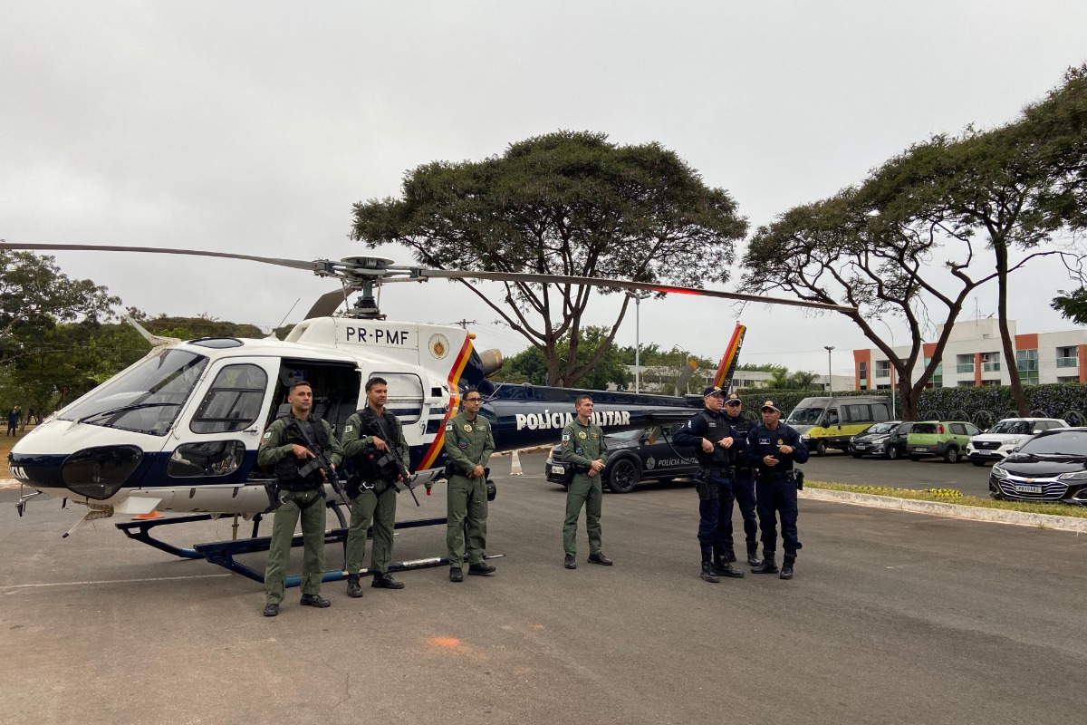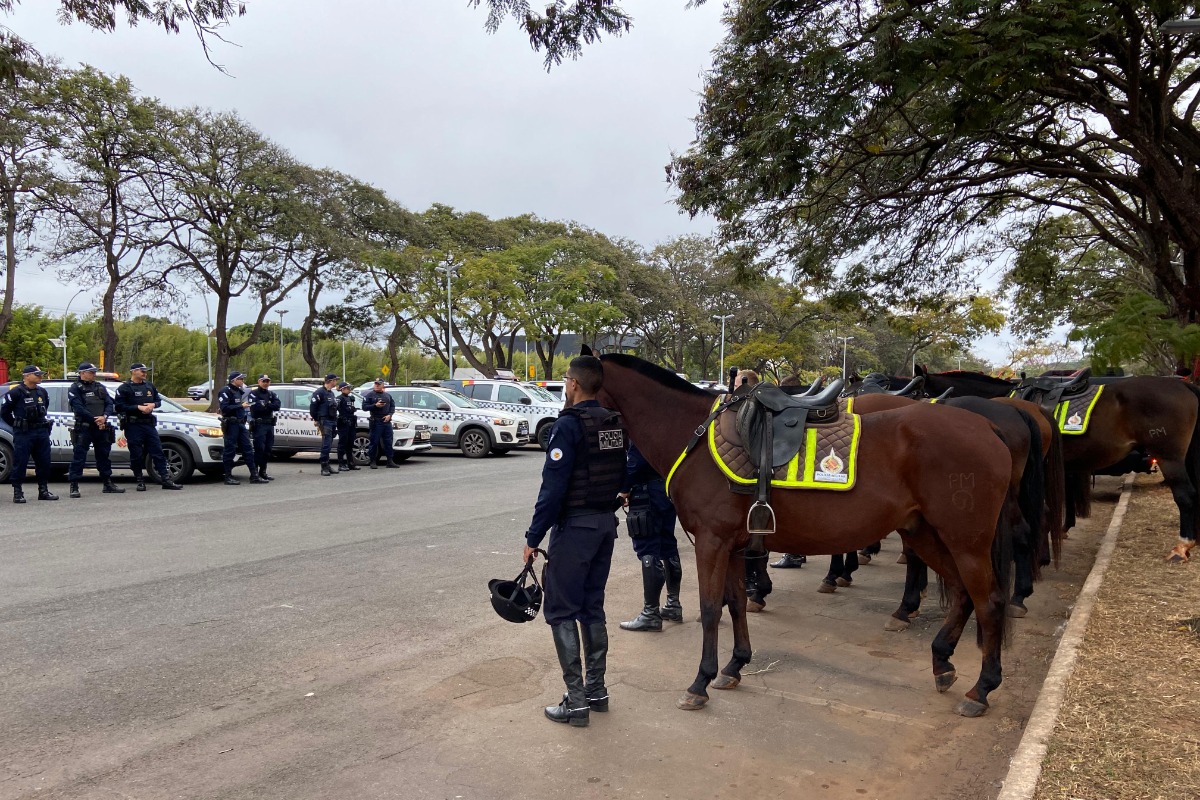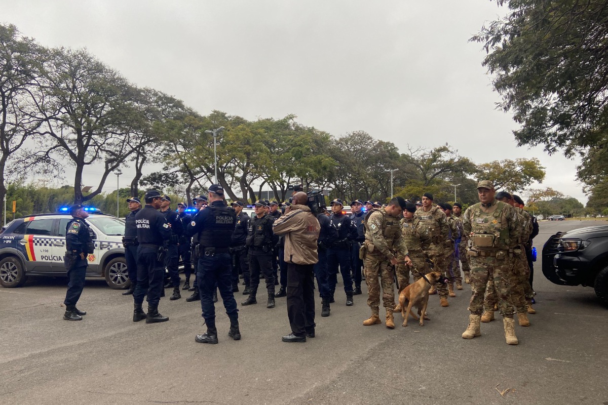 Segundo a Polícia Militar, mais de 60 policiais militares do 1º BPM, do BPChoque, do BPCães, do Regimento de Polícia Montada (RPMon) e do Batalhão de Aviação Operacional (Bavop) participam da ação, iniciada por volta das 7h30, no Parque da Cidade. Mais de 20 viaturas saíram em ronda pela região da Asa Sul e da Vila Telebrasília.