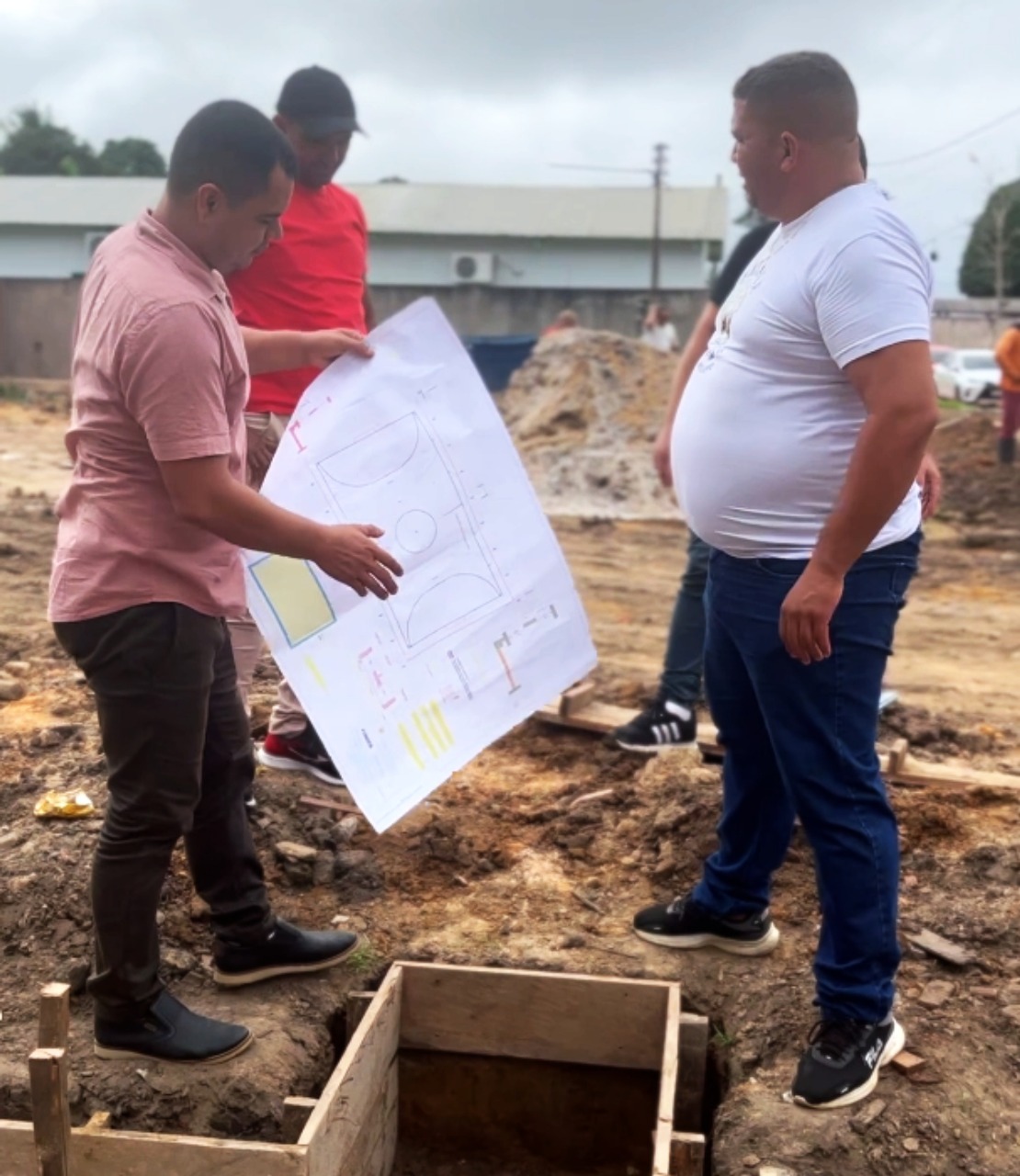Junto com o vereador Raiden e o secretário de administração, o prefeito em exercício acompanhou a construção da quadra coberta na comunidade do Profeta , além do serviço da pavimentação da estrada do Profeta.