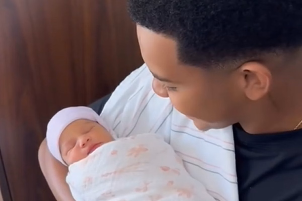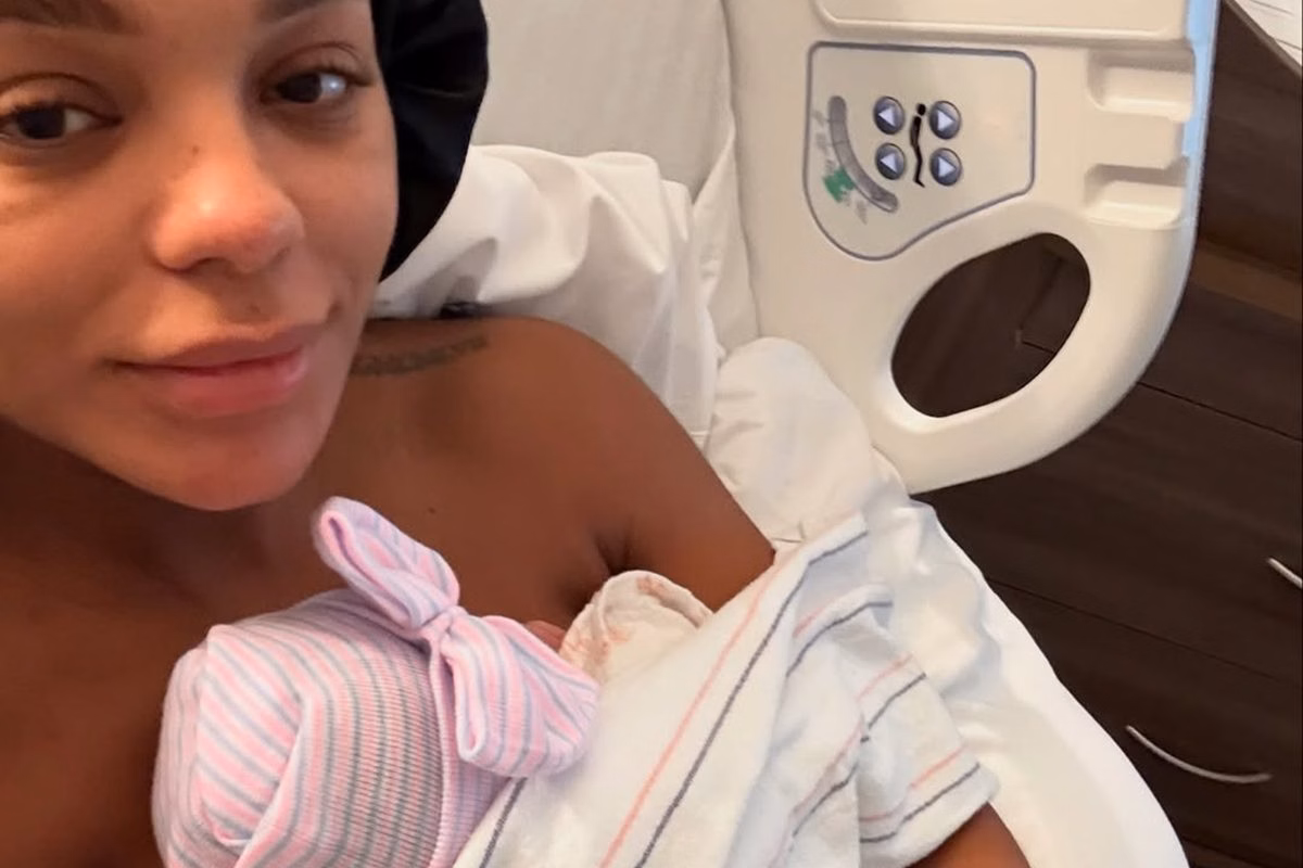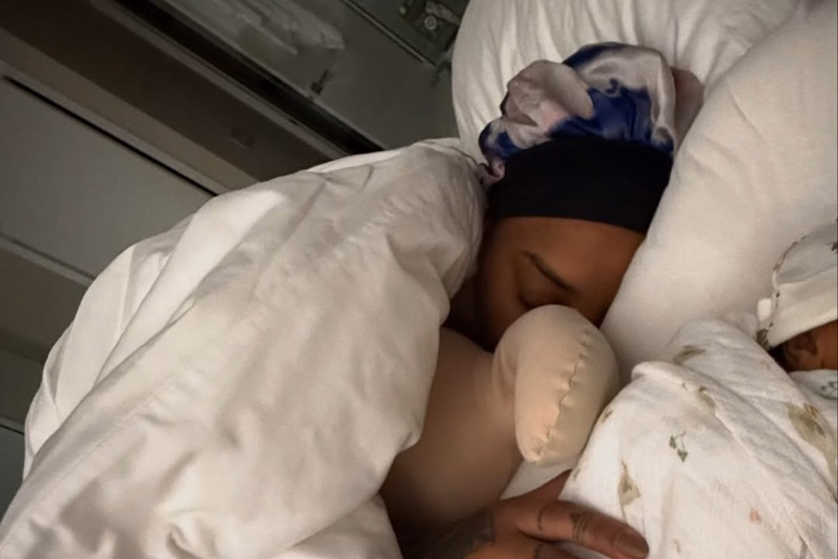 Brunna Gonçalves dorme ao lado da recém-nascida