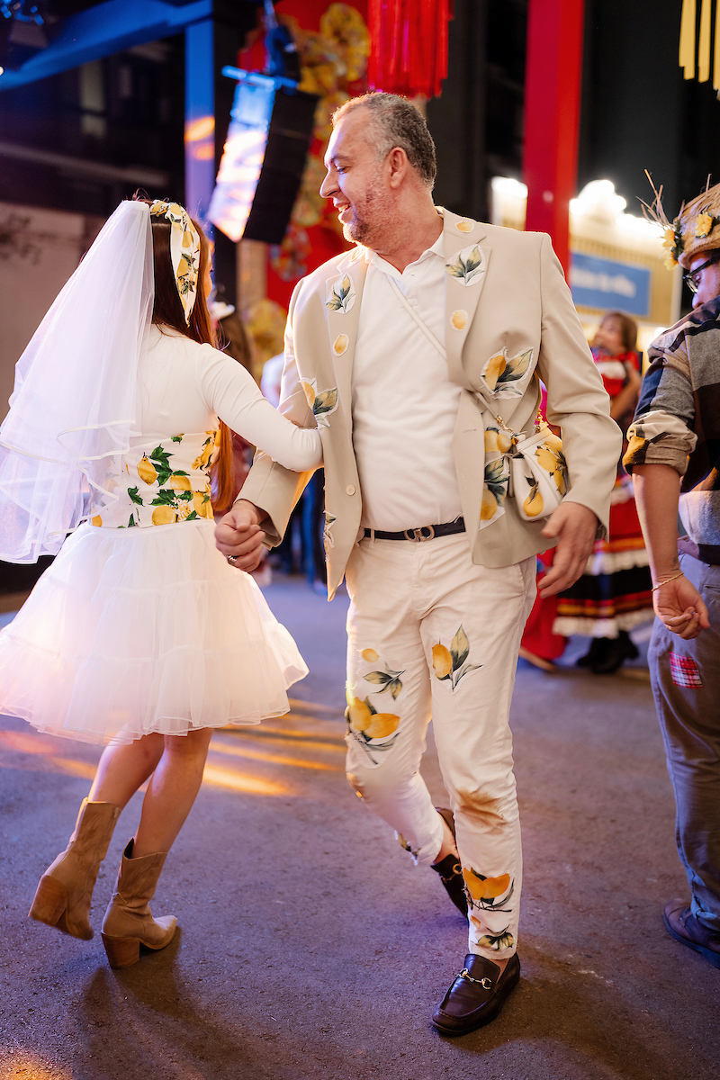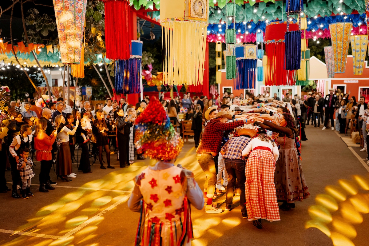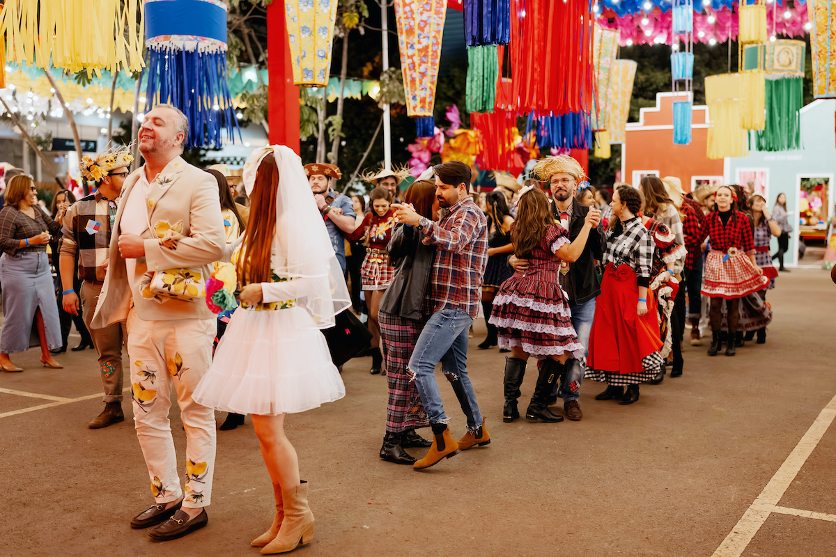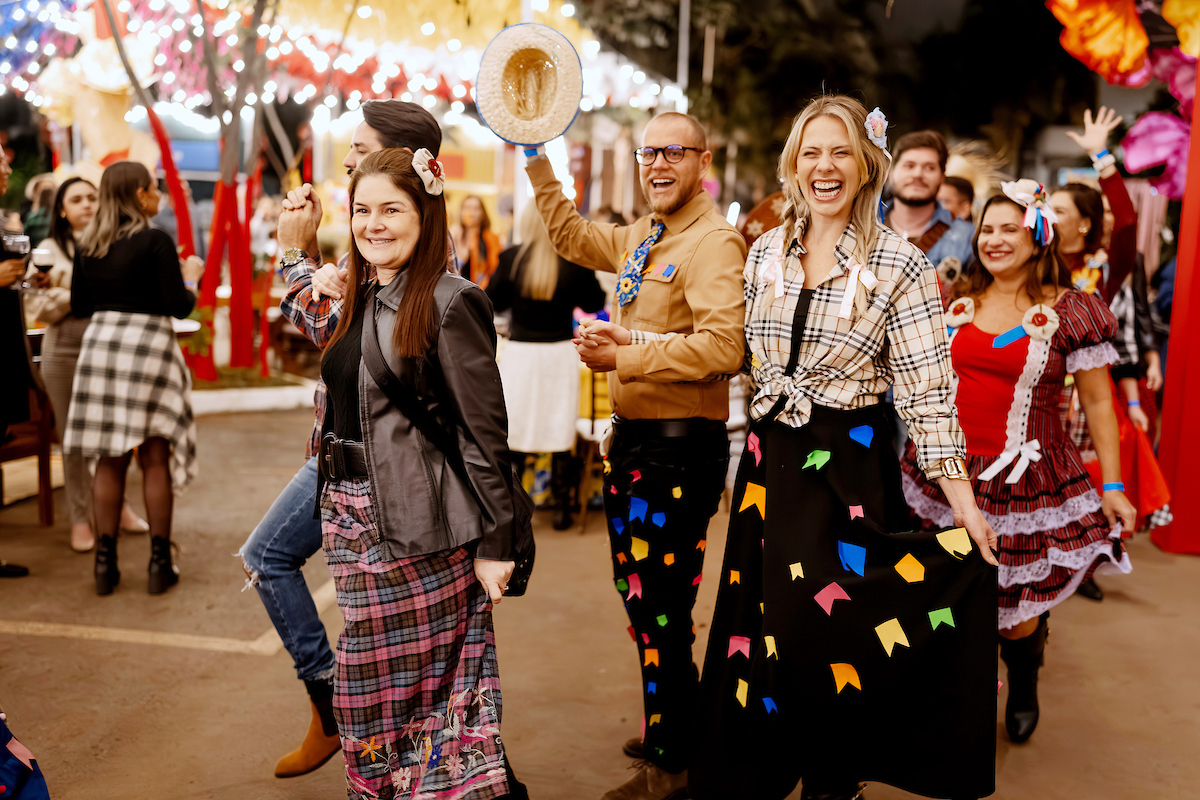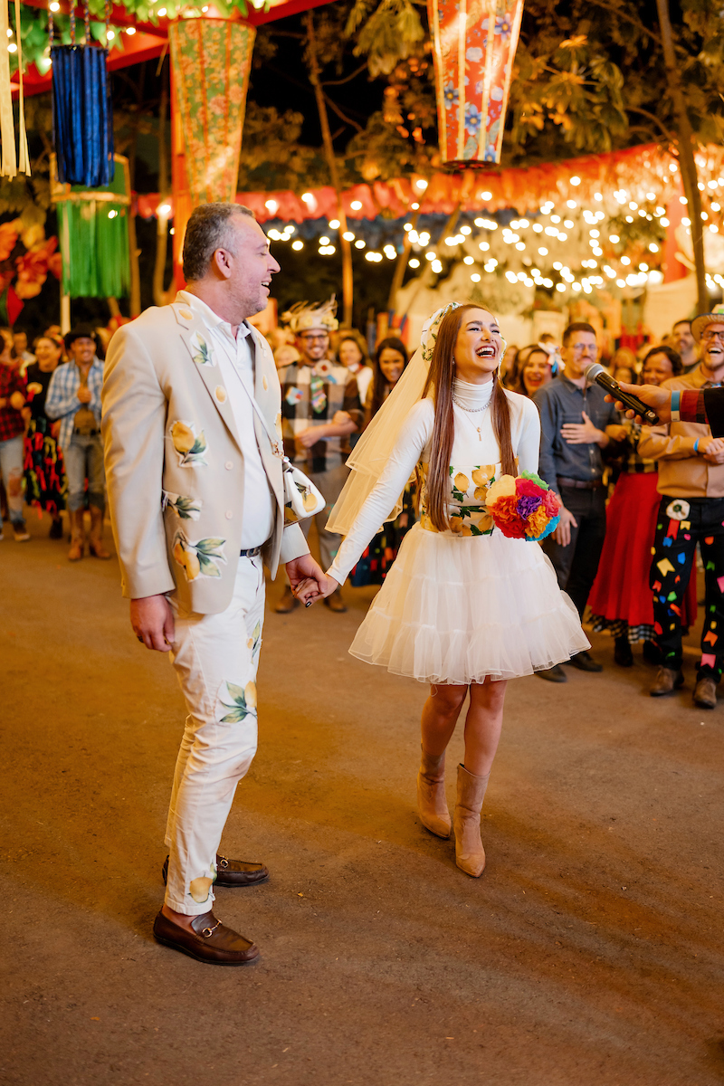 A apresentação da Quadrilha Junina Prime, formada por lojistas, arquitetos e designers parceiros do shopping, se tornou um dos momentos mais aguardados da comemoração. Enquanto Marco Túlio encenou como padre, Leo Batisaco e Thais Caixeta representaram o casal de noivos da folia.