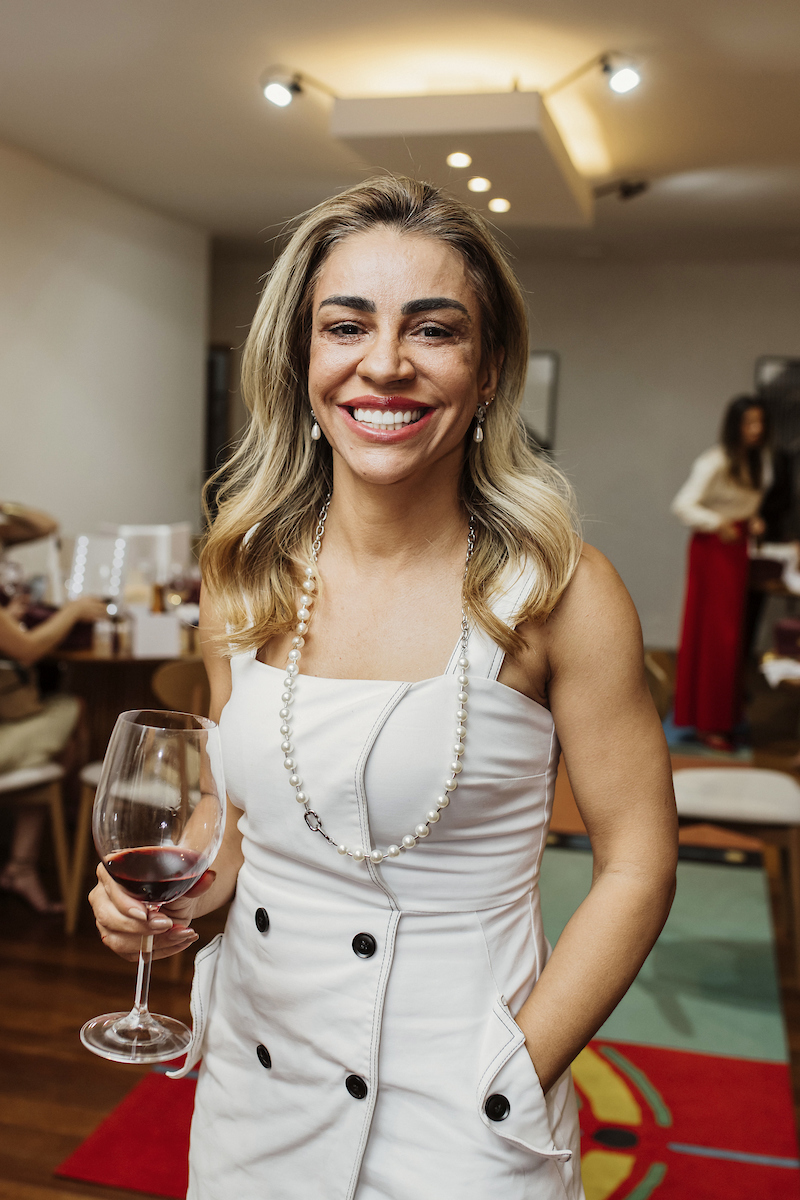 Empresária e fundadora da Wine C, Lara Torres foi a responsável por apresentar os vinhos para as presentes. De acordo com ela, o vinho se relaciona com a beleza de várias formas. “O espumante conversa com uma beleza sem excessos, simples, como as tendências atuais. O vinho rosé é mais romântico, remete ao blush e ao batom rosado. Já o vinho tinto é mais sensual, remete a um batom vermelho”, exemplifica.