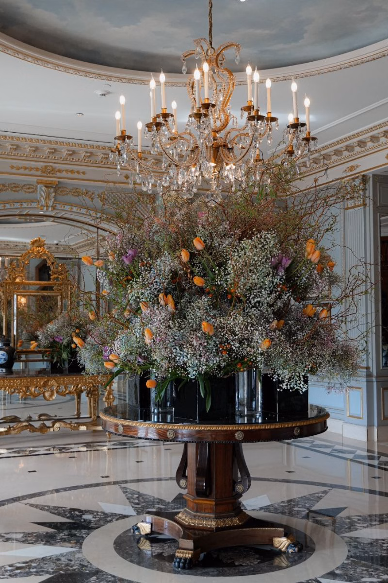 Ainda no lobby, é impossível não se impactar com o teto pintado à mão e os lustres de cristal. Já os corredores são revestidos em madeira nobre e carpetes luxuosos, lembrando um palácio real.