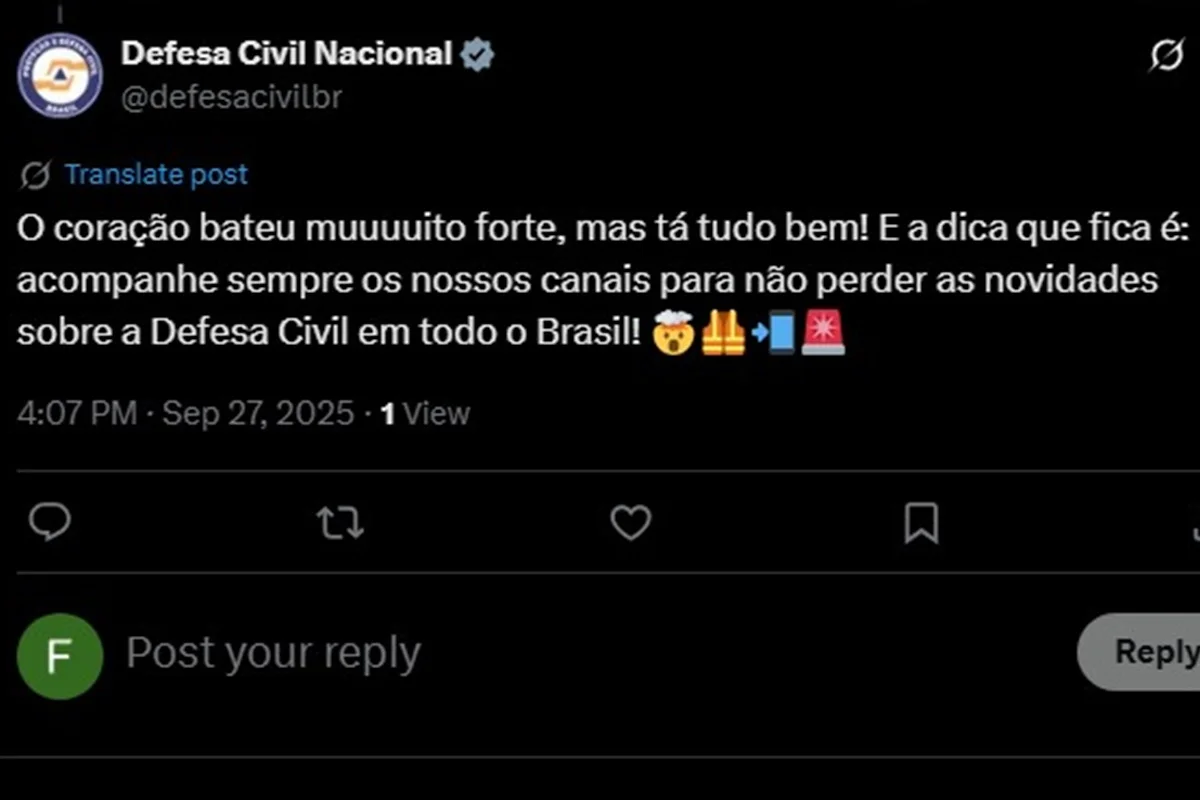 O teste também virou assunto em comentários de publicações em diferentes redes. Com bom humor, um cidadão comentou em uma postagem no Instagram: “Meu Deus achei que Brasília estava acabando com o alerta da Defesa Civil. Que susto”.