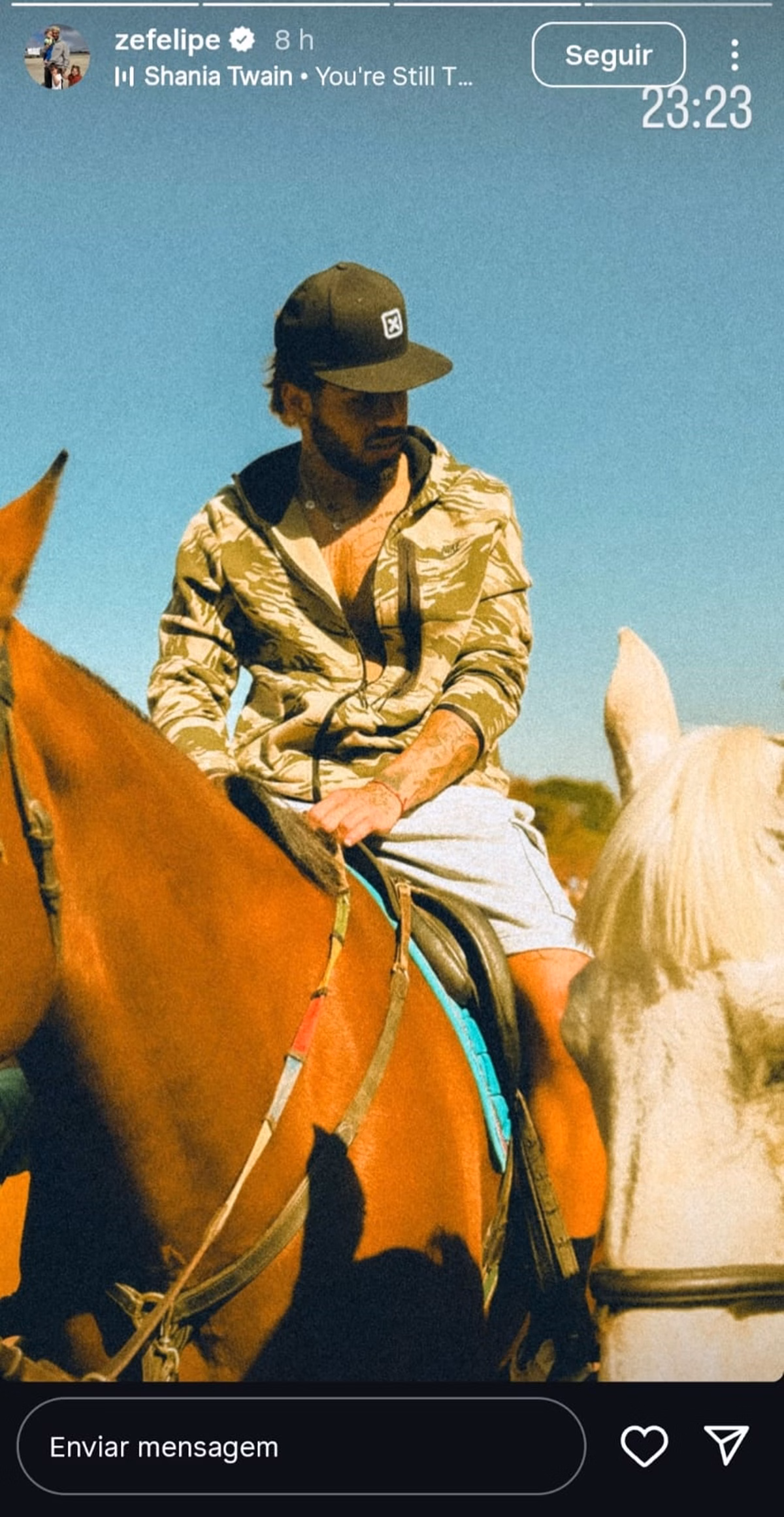 Nos stories do Instagram, exatamente às 23h23, os cantores publicaram imagens montados em um cavalo, ao som de You’re Still the One, de Shania Twain. Amigos e familiares do cantor, como Odorico e Poliana Rocha, também fizeram publicações parecidas.