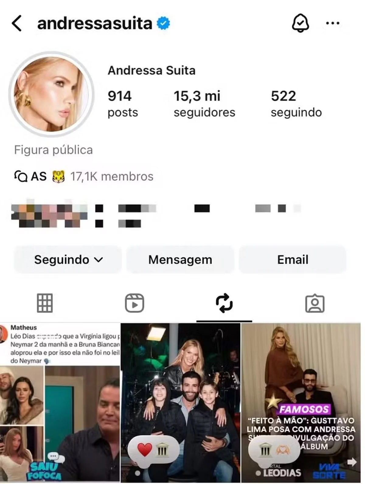 Andressa Suita agita web com suposta indireta a Virginia em publicação de Ana Castela