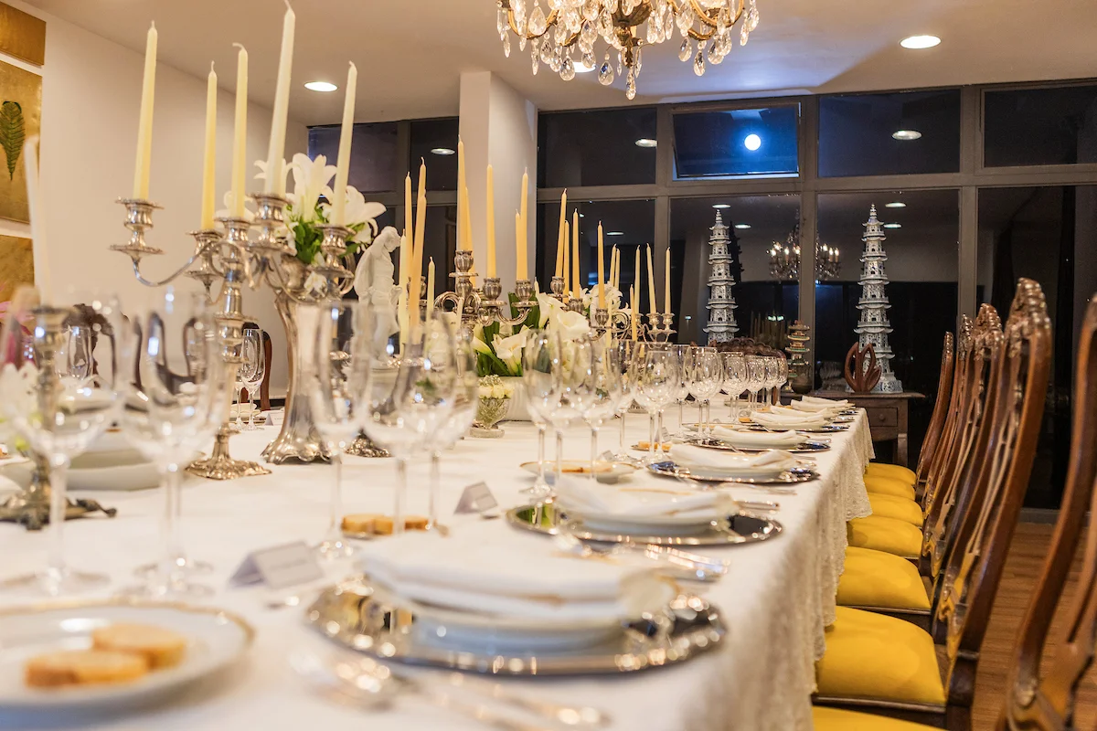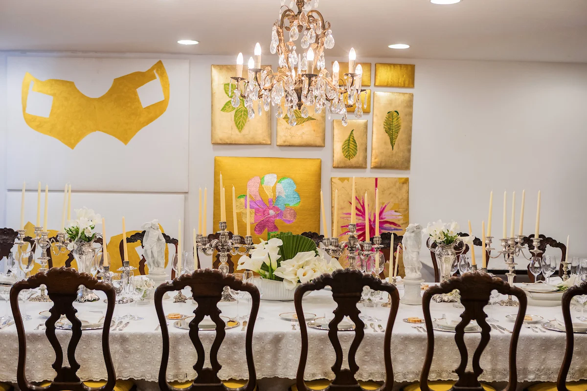 Quando decidiu oferecer o jantar para amizades, Aversa quis celebrar as relações entre Brasil e Portugal. Para concretizar o propósito, ele viu como oportunidade firmar novamente uma colaboração com a marca lusitana de louças Vista Alegre, responsável por embelezar as mesas postas de eventos na Embaixada Portuguesa. Diretores da etiqueta, Valéria Álvares e Bruno Dias fizeram a ponte aérea São Paulo-Brasília especialmente para prestigiar a ocasião.