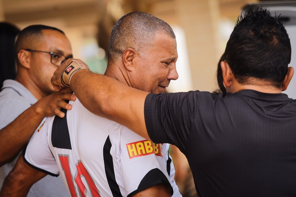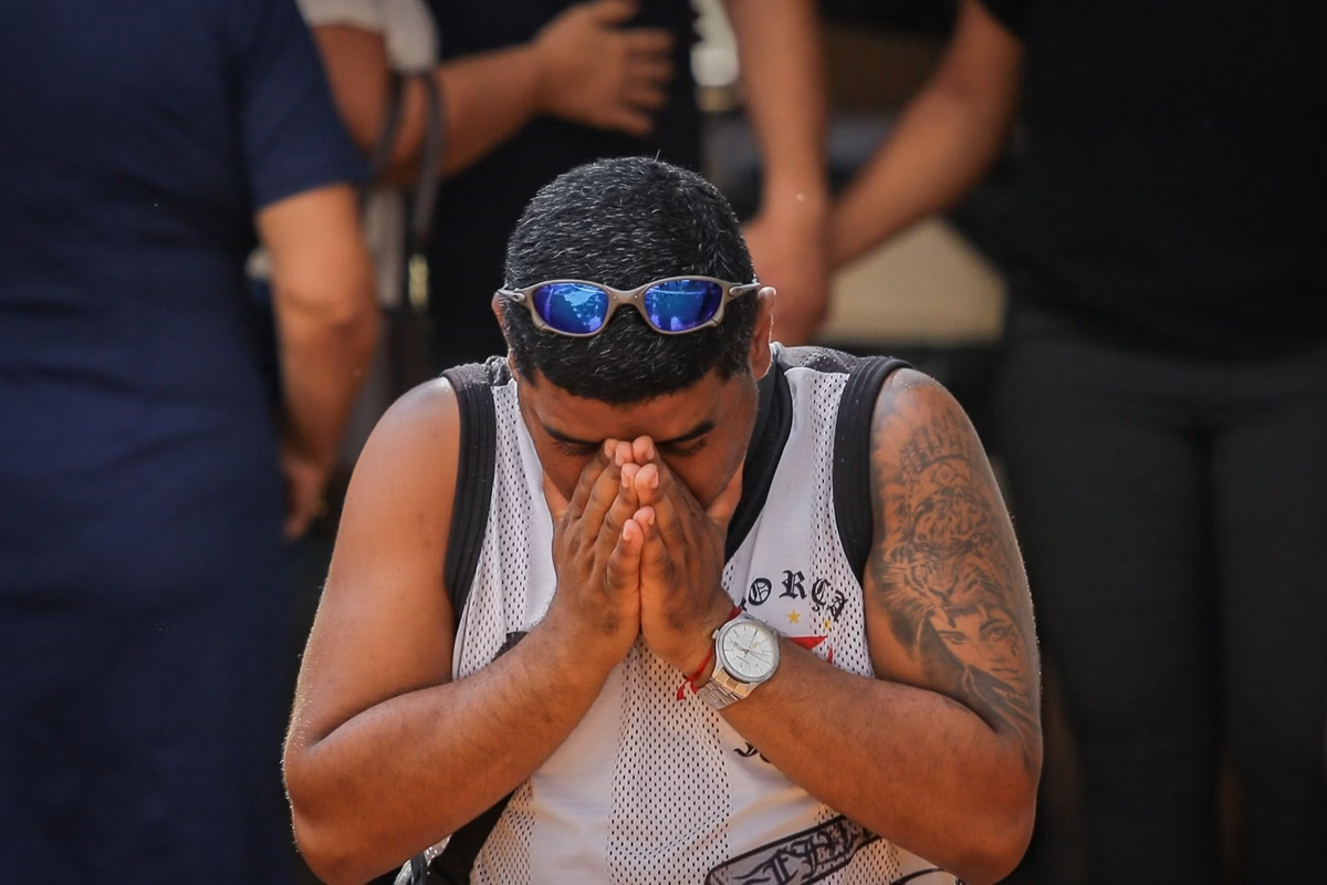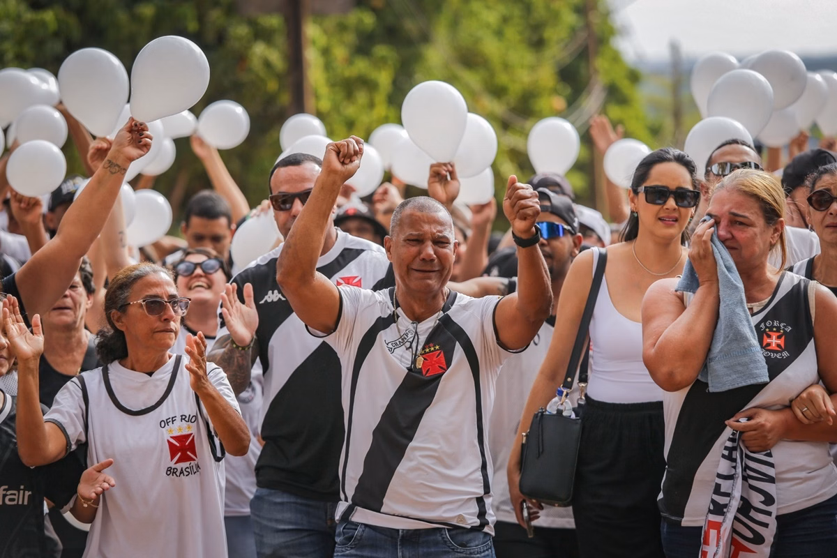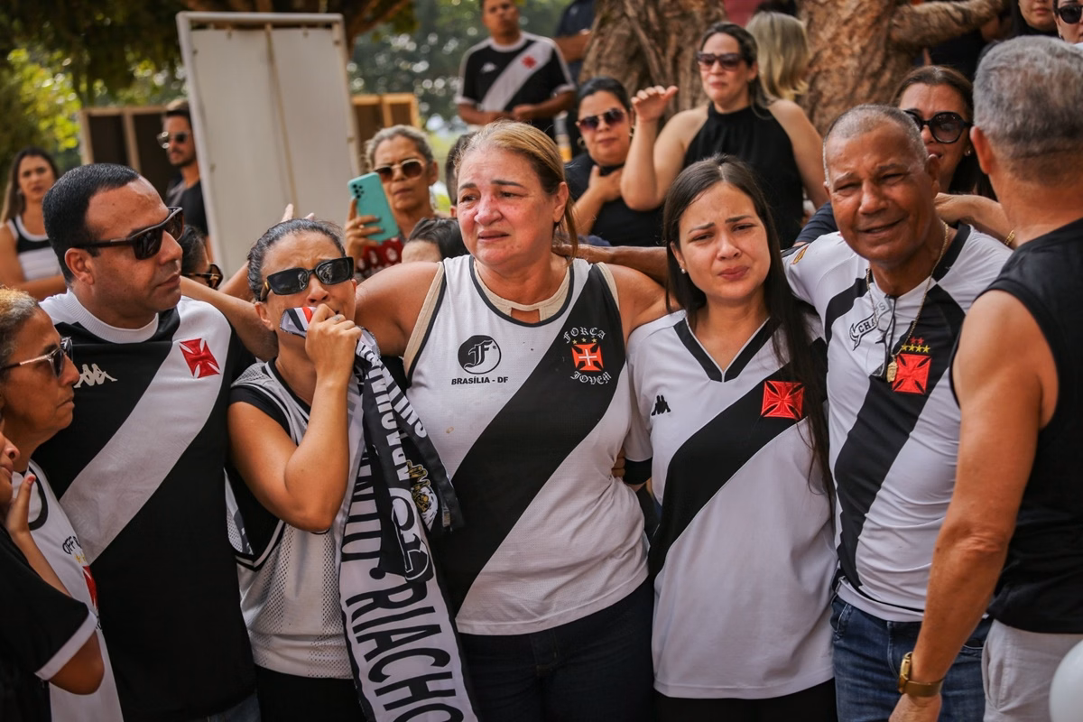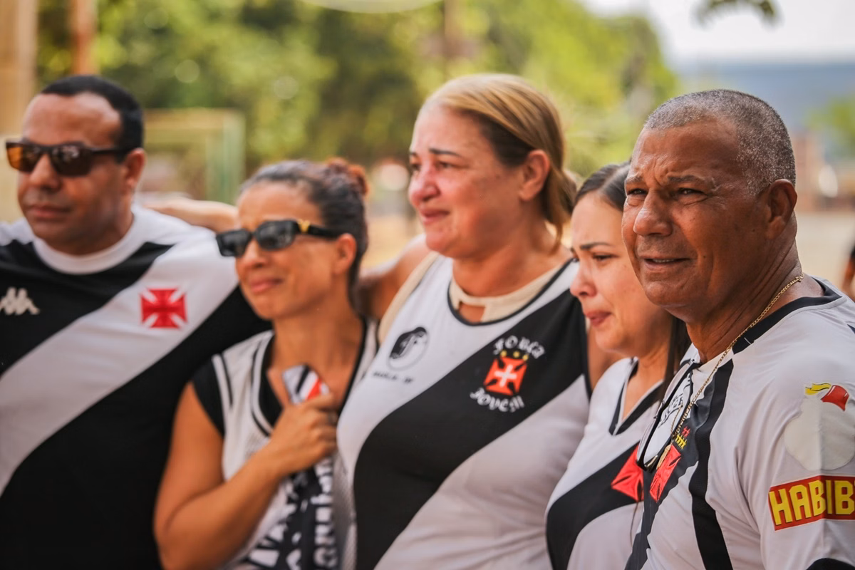 Emocionado, o pai do vascaíno, José Eumar Vaz, entoava os cantos da torcida vascaína em meio às lágrimas pela perda. “Obrigado, meus amigos, por esse amor que vocês sempre tiveram com o meu filho”, declarou aos presentes, enquanto o corpo do filho era velado.