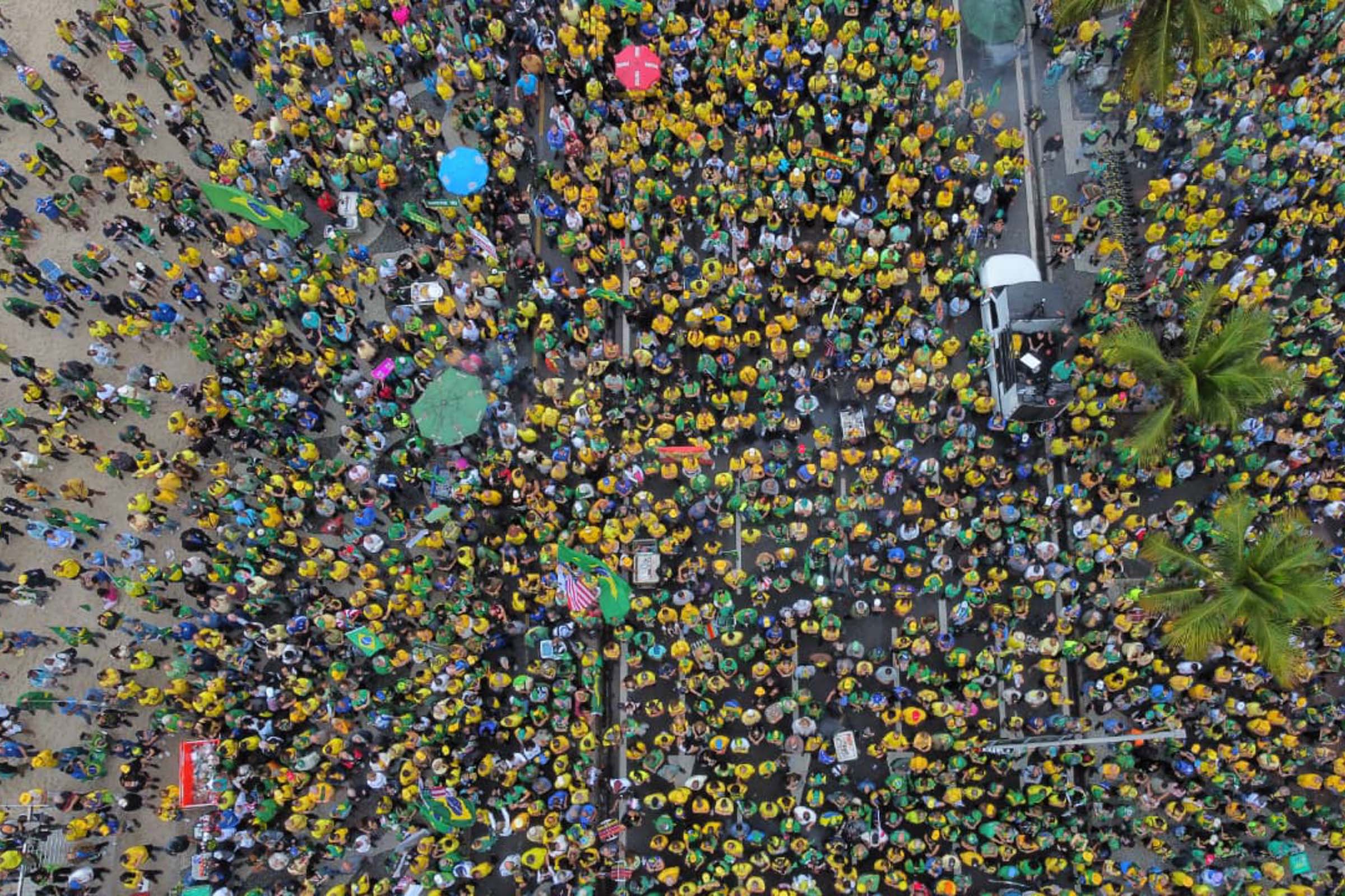 No Rio de Janeiro, manifestantes de direita ocuparam as ruas de Copacabana