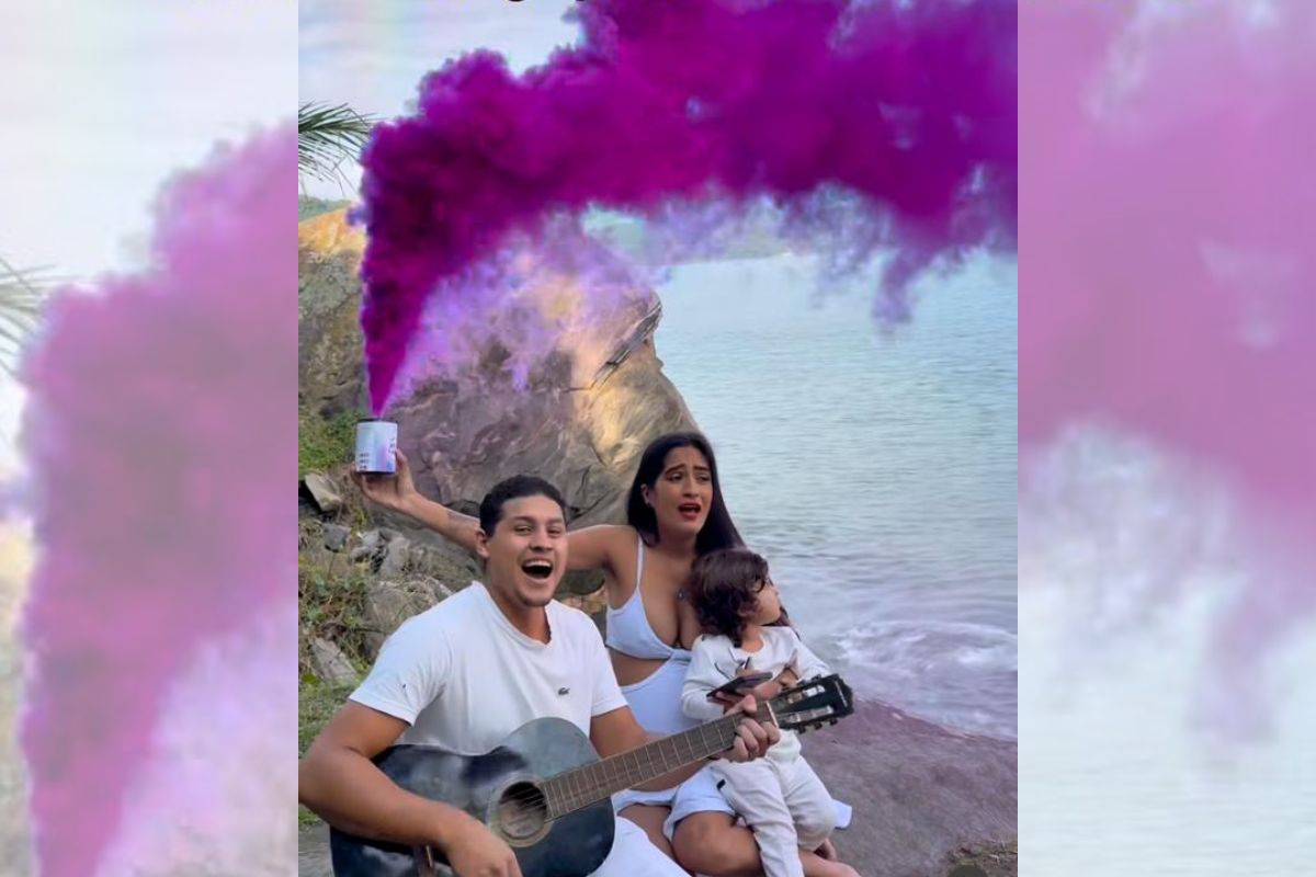 Thielly explica para a avó que se fosse menino, o exame diria masculino. Por fim, eles aparecem em uma segunda celebração, com a fumaça rosa. Em outra publicação, ela escreveu: “Me emocionei e chorei muito de verdade, mesmo eu já sabendo o que era. Queria fazer um momento só nosso e por mais simples que seja, foi muito aconchegante.”