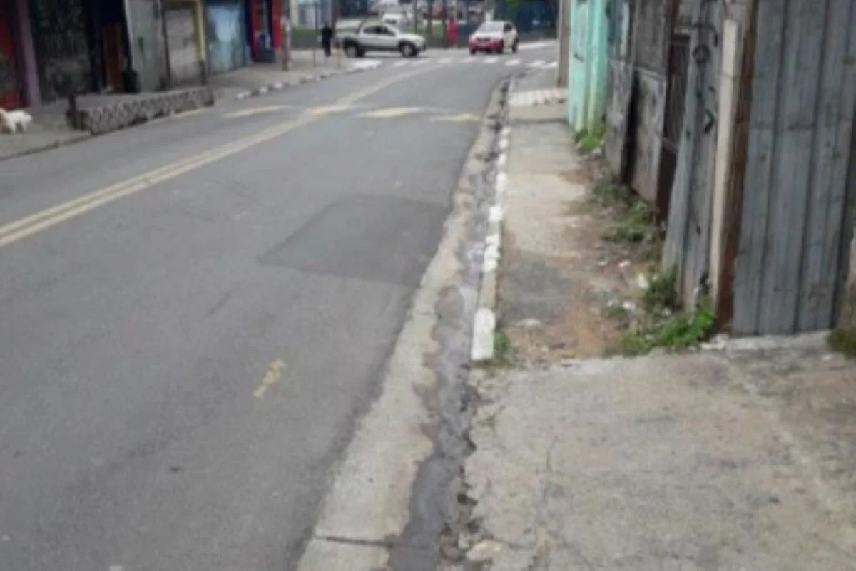 Rua que foi asfaltada recentemente em Carapicuíba e já tem buracos