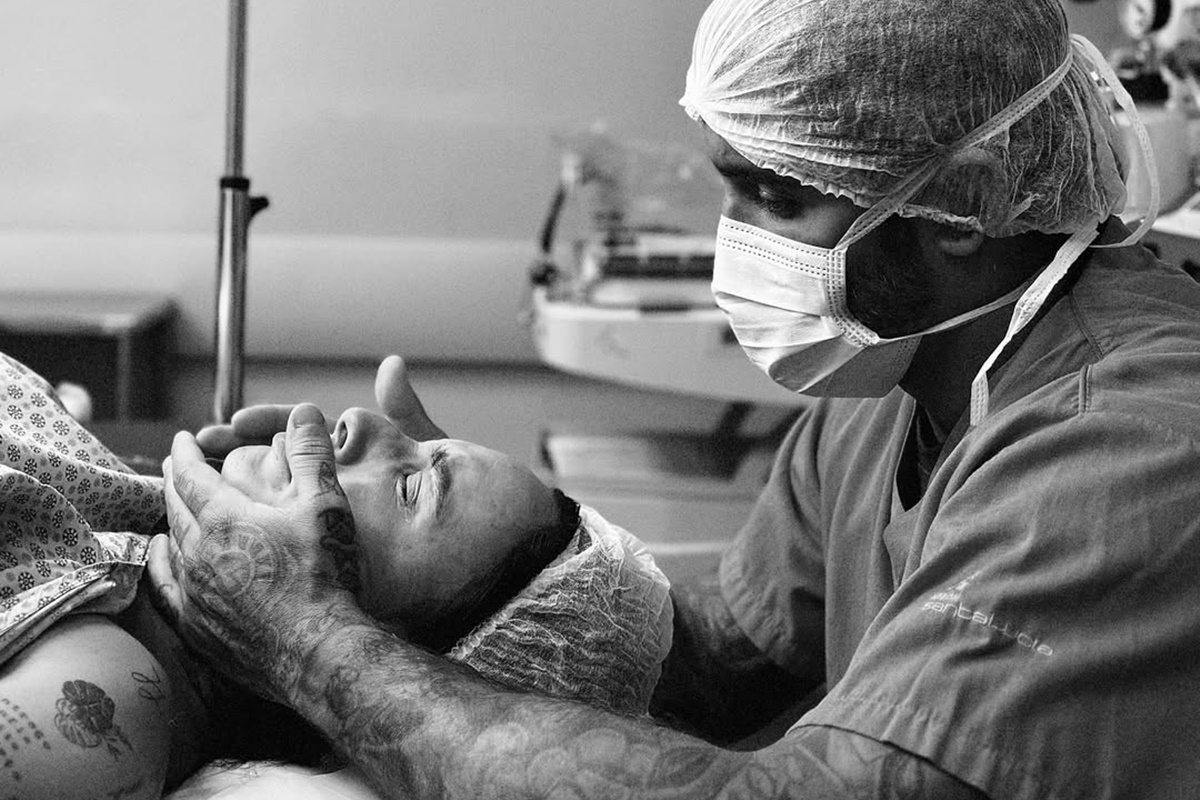 André Coelho dá suporte à esposa, Clara Maia, durante o parto prematuro
