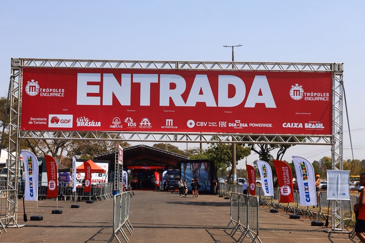 Entrada do espaço onde ocorreu a entrega dos kits da Meia Maratona Metrópoles
