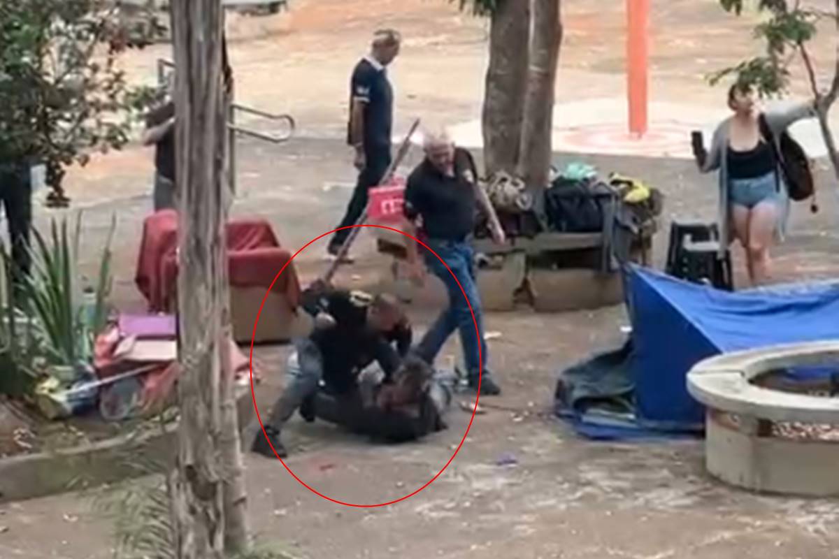 Depois do bate-boca, a mulher cai e acaba puxando o homem. É neste momento que o segurança parte para cima da mulher e desfere uma série de socos contra a cabeça e o rosto dela. Toda ação foi filmada por pessoas que se revoltaram com a atitude do homem. “Não bate, não”, gritaram as testemunhas, que passaram a intervir nas agressões.