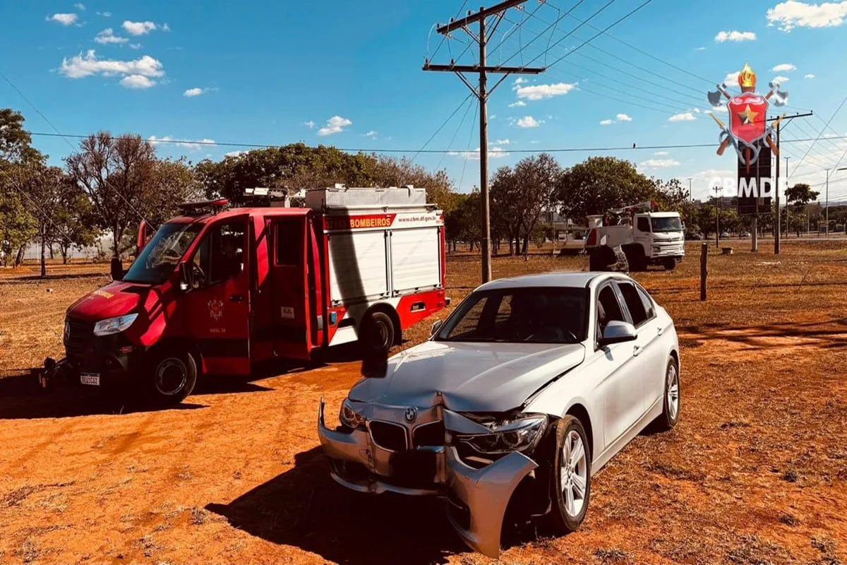 Às 15h03, perto do viaduto do Sudoeste, um BMW 320i, de cor prata, também atingiu um poste.