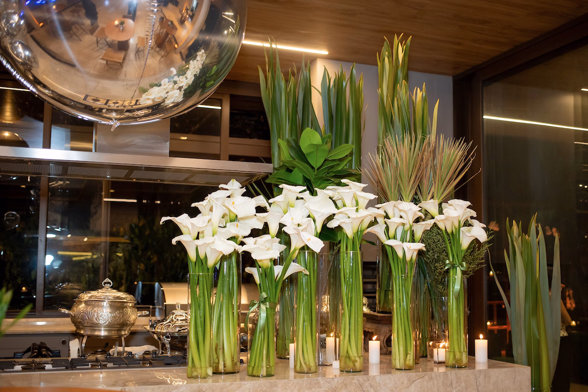 Os elementos escolhidos para dar o tom da noite dialogavam perfeitamente com a casa, uma residência imponente, mas que mantém o aconchego como marca principal do ambiente.