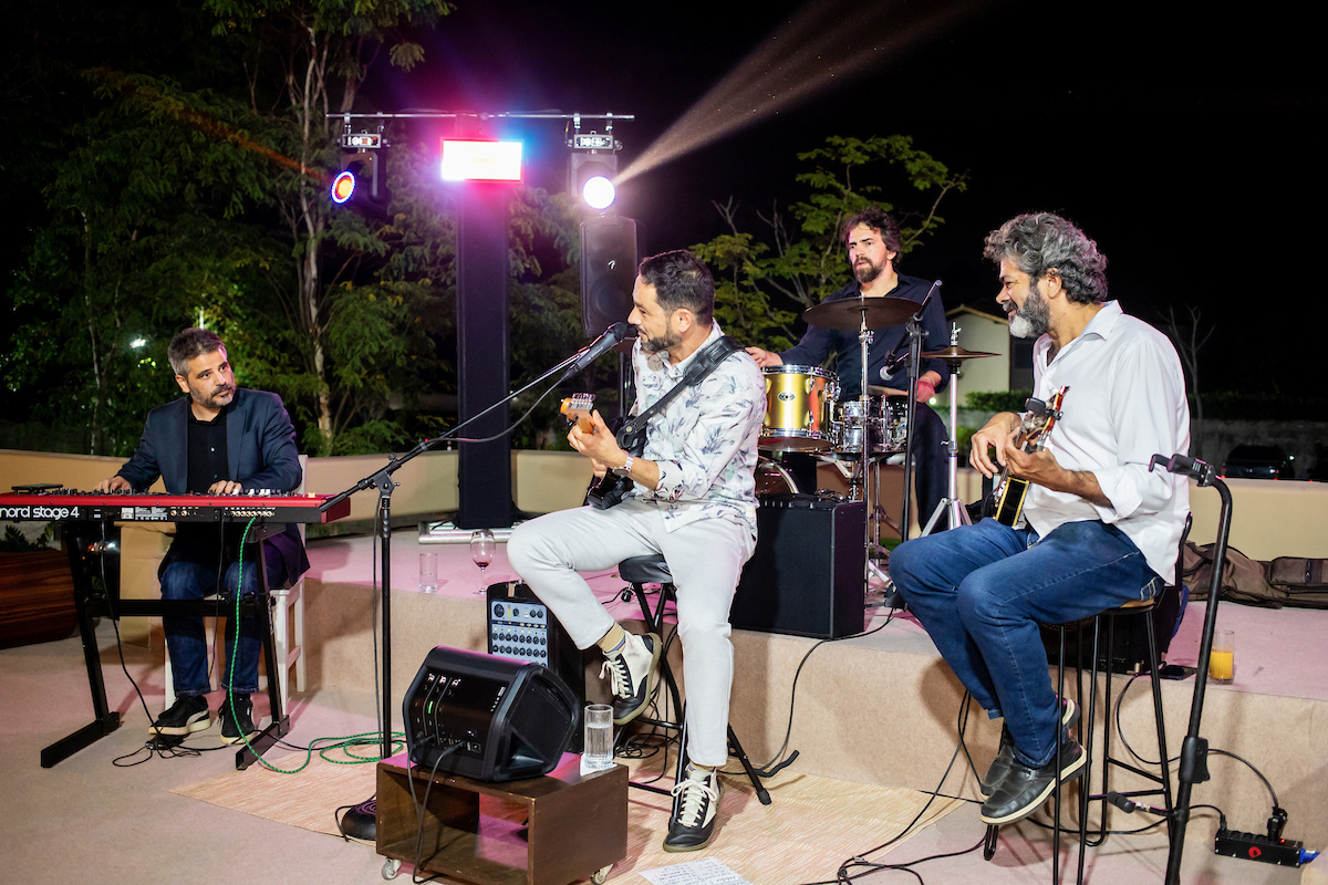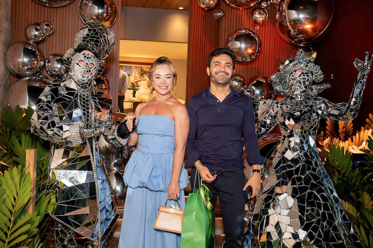 Felicidade é a palavra que resume a noite. O clima da festa era descontraído e de muita diversão, representando perfeitamente a personalidade do simpático casal. As risadas dos convidados se misturavam à agradável música ambiente comandada pelo músico Bruno Aguiar e banda.