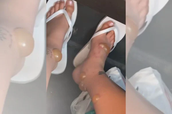 Pouco depois da viagem, a mulher compartilhou nas redes sociais uma reação alarmante a picadas de insetos. O vídeo, que rapidamente viralizou no TikTok e já soma mais de 23 milhões de visualizações, mostra seus pés e pernas cobertos por grande bolhas cheias de pus, tão dolorosas que ela mal conseguia andar.