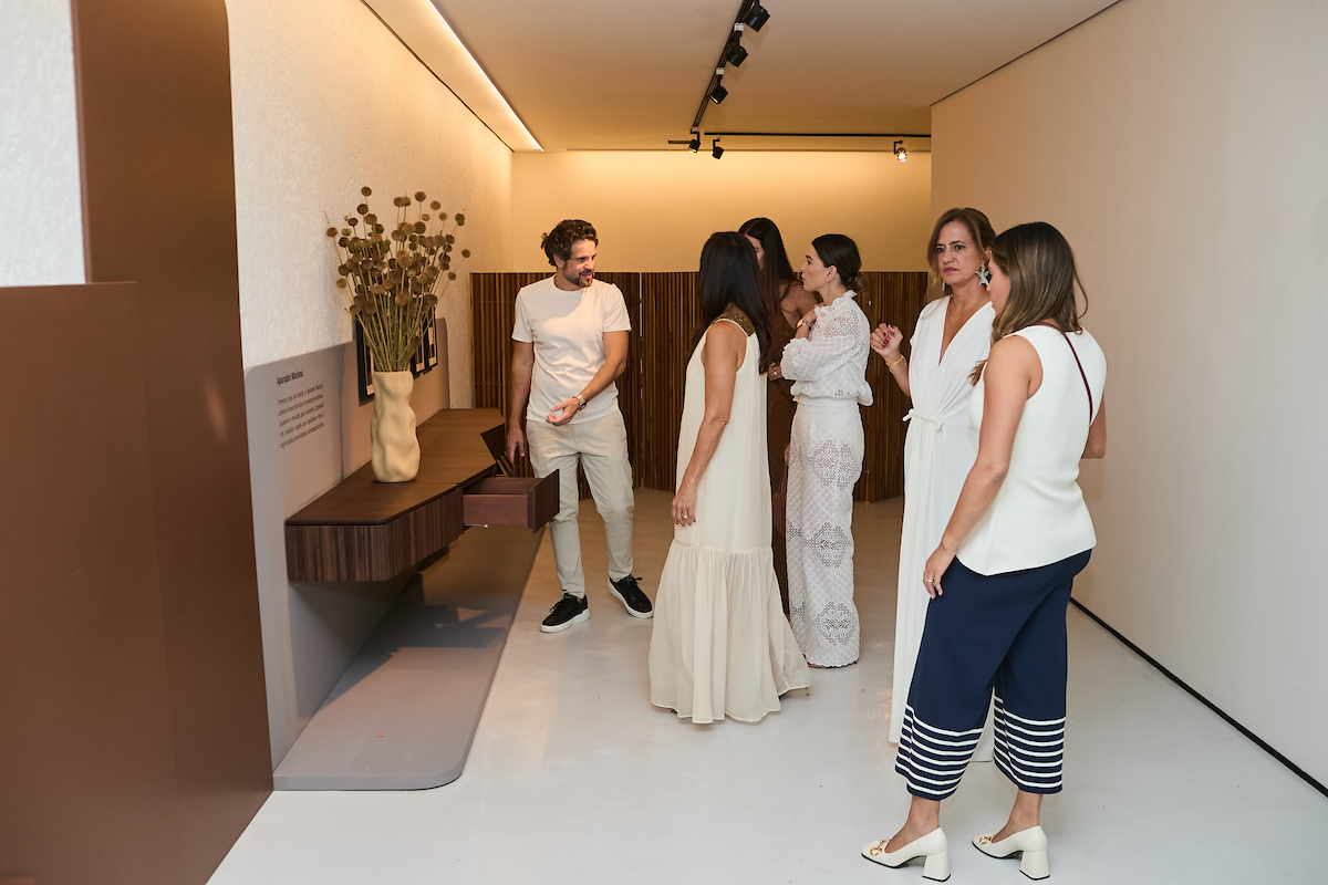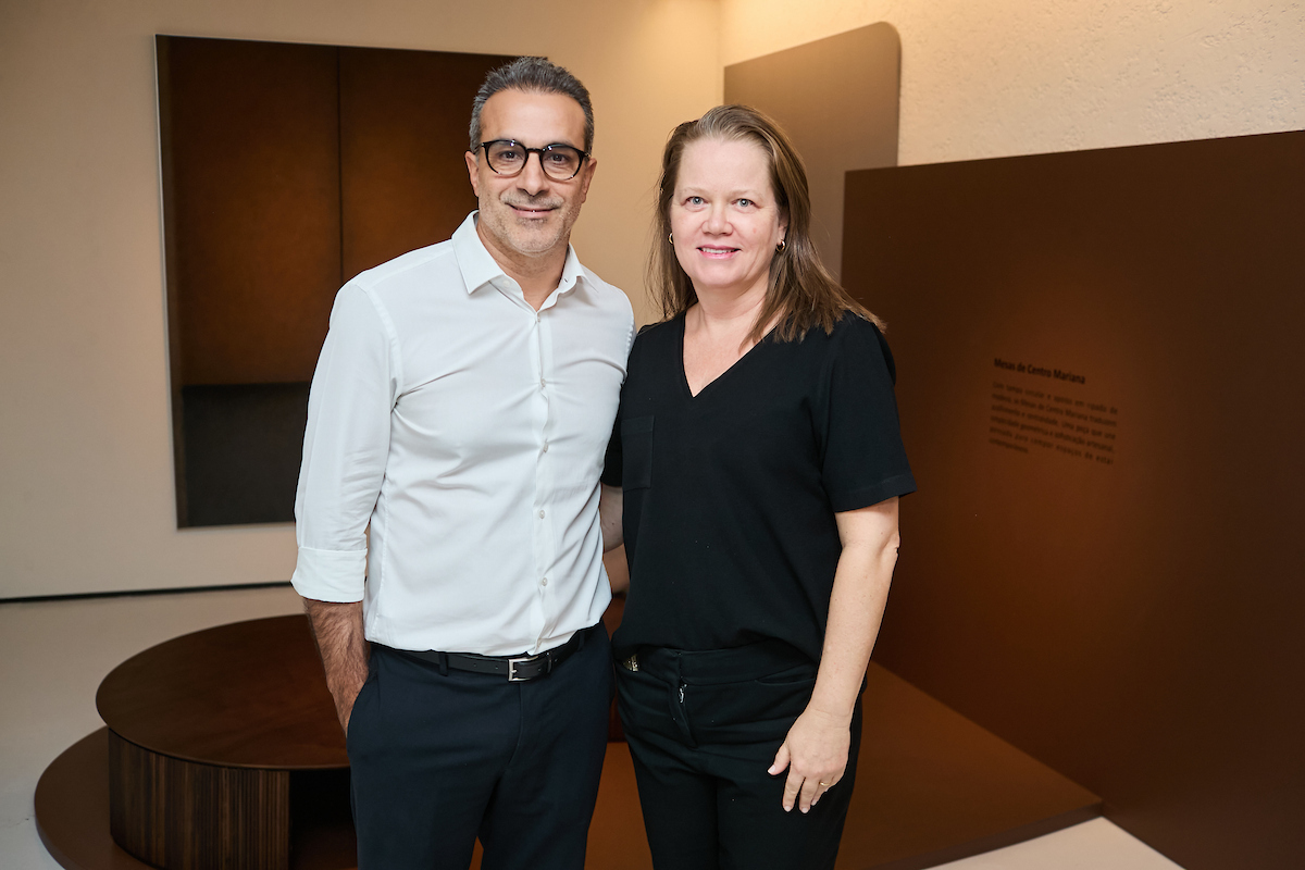 A linha Mariana é uma homenagem à filha de Isabel Veiga, que participou orgulhosamente de cada momento do coquetel. “No ano passado, nós apresentamos o aparador. Já as mesas de centro foram lançadas na CASACOR São Paulo. E o Carlos nos cedeu o espaço dele para trazermos a mesa de buffet à DW [versão local do maior festival de design da América Latina no CasaPark]”, diz a arquiteta e urbanista.