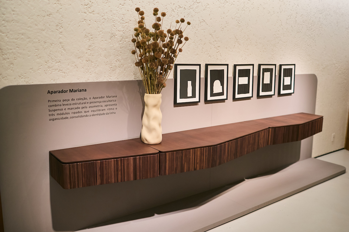 Segundo Arnaldo Pinho, tudo teve início com um convite da fábrica Saint Germain. “Ela tem vários designers que assinam para ela, e nós começamos como curadores, ou seja, escolhíamos tudo o que entrava em linha. Então, eles nos propuseram a desenhar para eles. O primeiro desenho foi o aparador Mariana, algo bem orgânico”, compartilha.