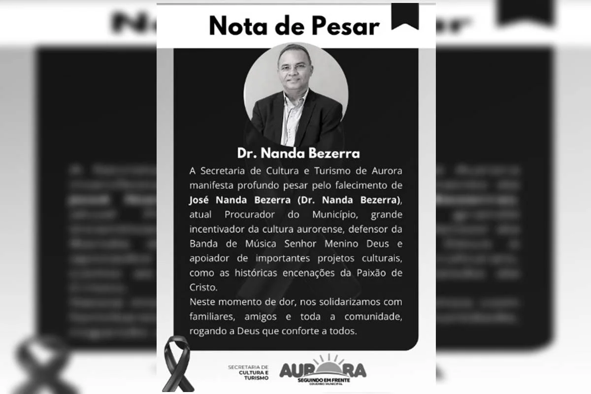 O procurador-geral do município de Aurora, no Cariri do Ceará, foi assassinado com um tiro na cabeça na noite dessa segunda-feira (29/9). José Nanda Bezerra, 59 anos (foto em destaque), passeava com o cachorro quando foi baleado. Horas antes, ele havia participado de uma reunião na prefeitura do município.