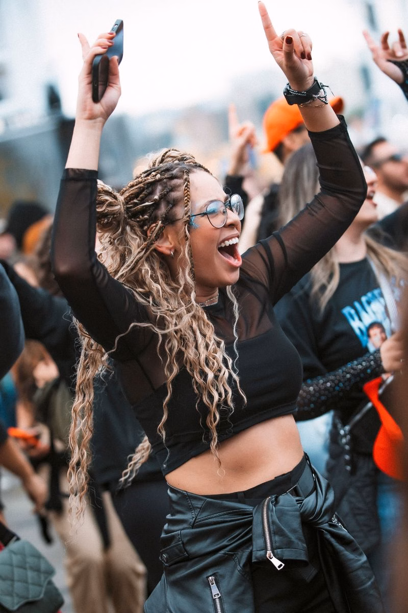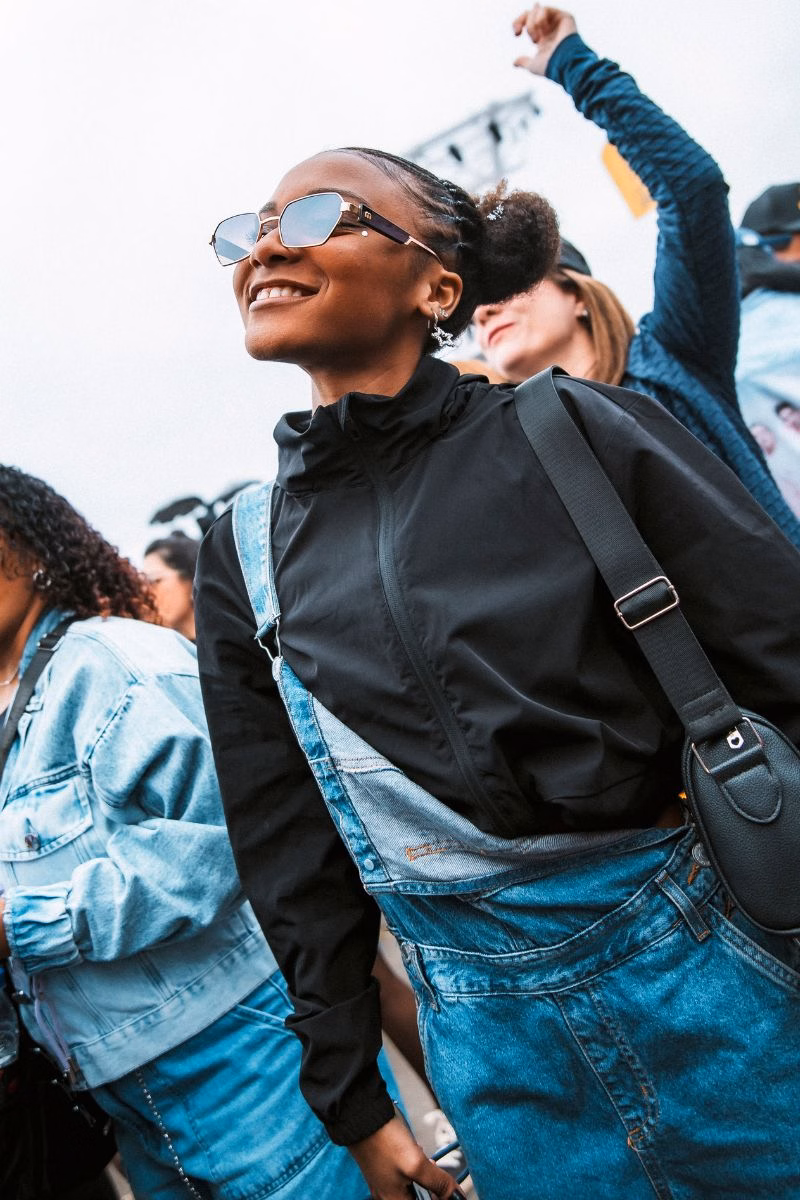 O ponto focal escolhido pelo público para adicionar personalidade aos looks caminhou mais para a adição de acessórios do que peças chamativas e coloridas. Entre bandanas, óculos de sol, chapéus e bonés, a “acessorização” foi uma forte aposta, assim como as jaquetas e calças jeans, contrastando com camisetas brancas. Em outfits monocromáticos no preto, os fãs incluíram correntes prateadas como elementos de apoio para o visual final.