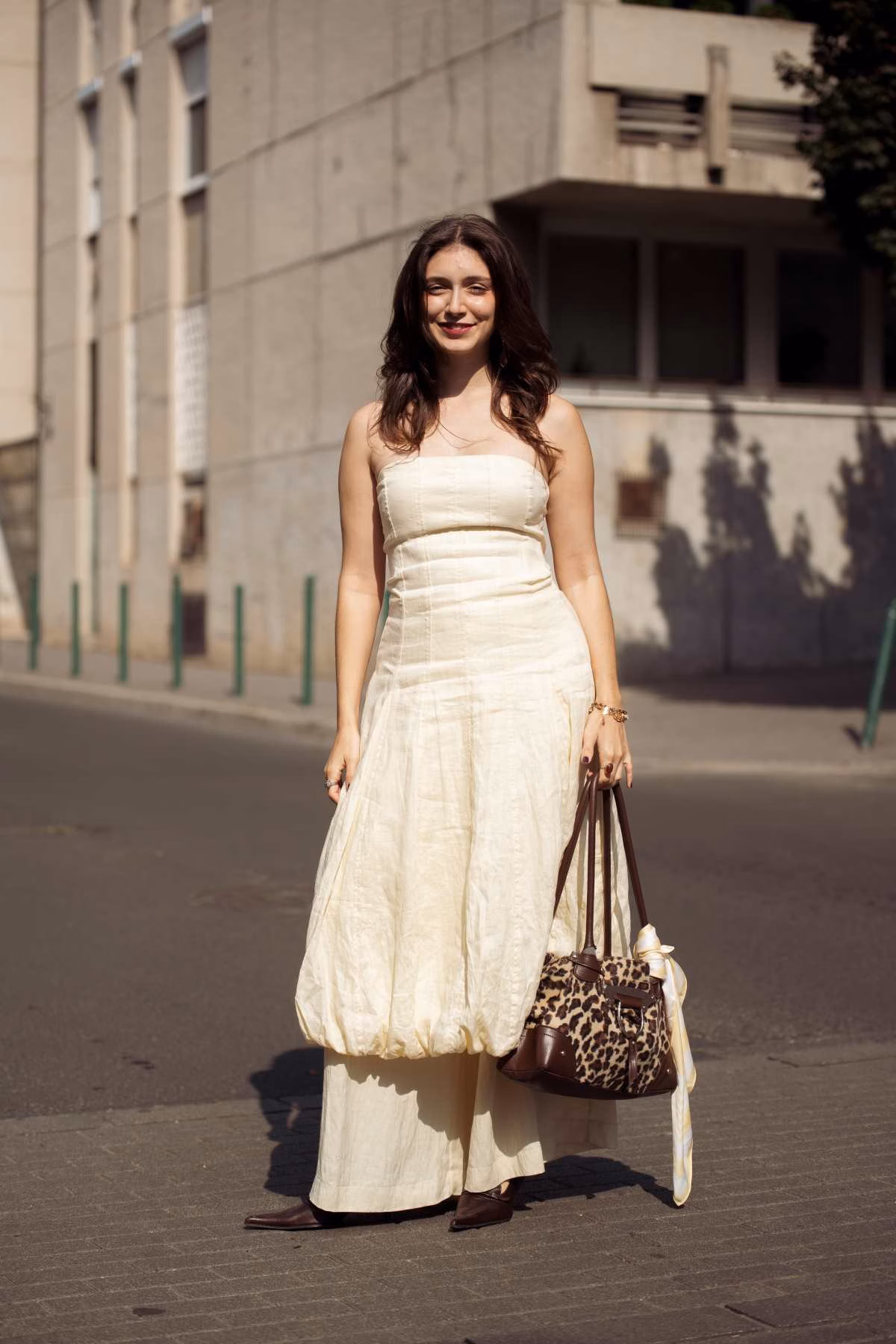 O primeiro passo para atender à trend é ter atenção às proporções. Escolher um vestido longo demais pode acabar cobrindo a calça por inteiro, o que pode quebrar parte da magia no visual.