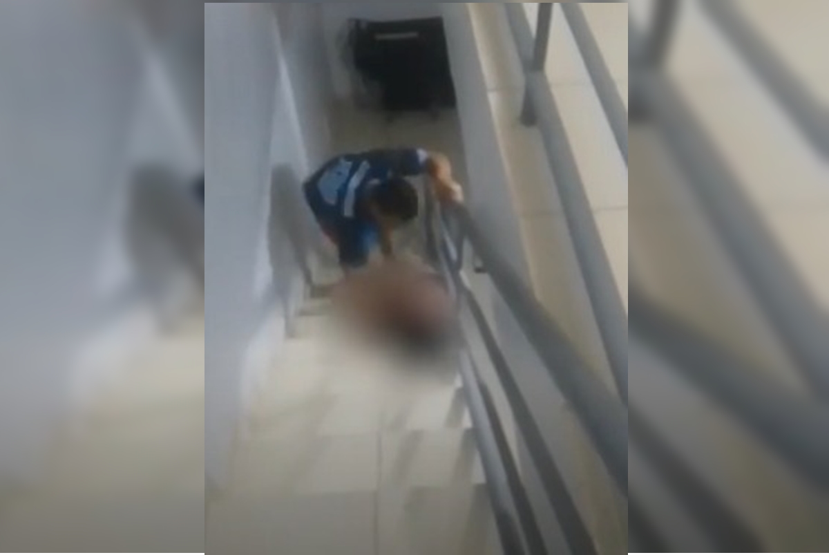 No vídeo gravado por moradores, a vítima aparece desacordada e caída na escada. O agressor se aproxima dela e grita: “Vou te matar” e, em seguida, desfere um tapa na mulher.