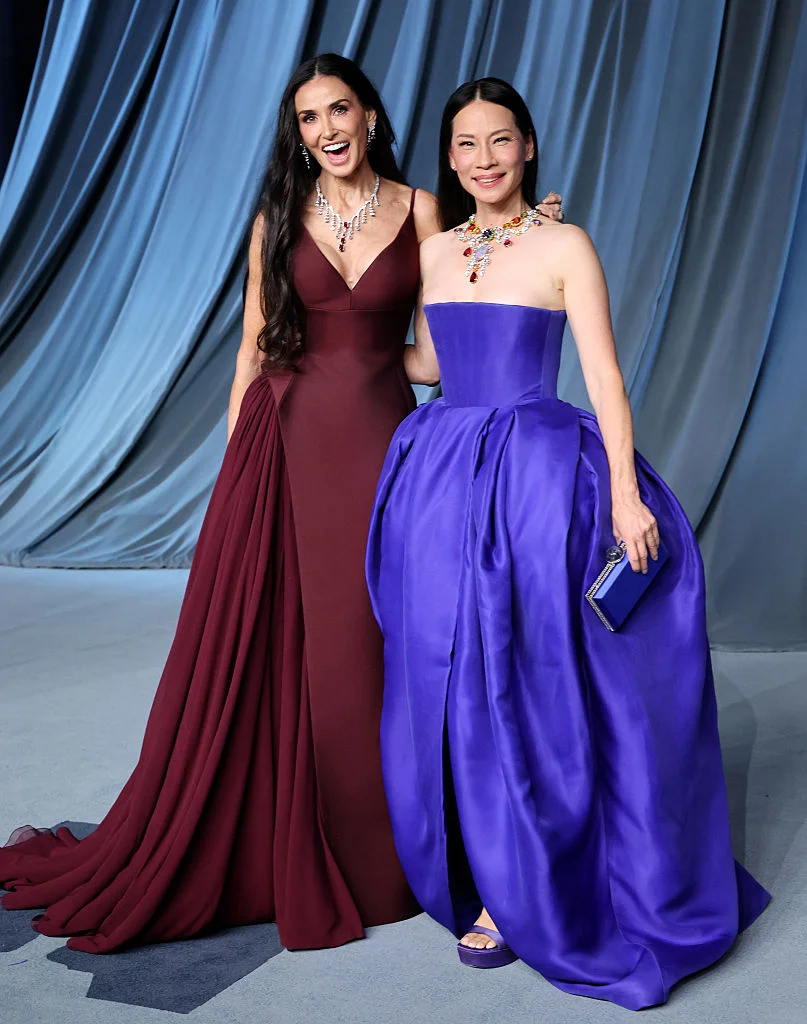 O tapete vermelho se transformou em um desfile de alta-costura e criatividade, com looks que anteciparam tendências da temporada de premiações. Demi Moore chamou atenção vestindo Prada, complementado por um cabelo volumoso inspirado na era Studio 54, assinado pelo hairstylist Dimitris Giannetos. A atriz exibiu ondas soltas e geométricas, combinando perfeitamente com a silhueta do vestido.