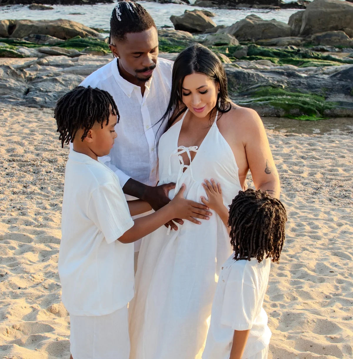 Lincoln Henrique, Adriana Müller e os filhos posam juntos durante revelação da gravidez