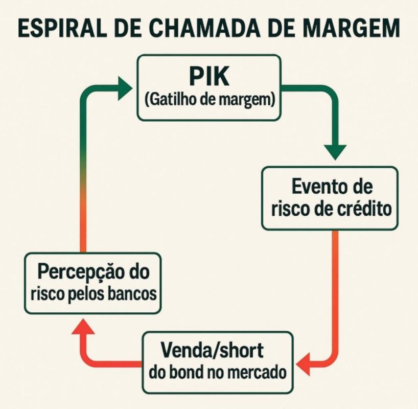 Já em março deste ano, ambos começam a estruturar o chamado PIK Bond, que é um instrumento financeiro que adia o desembolso de caixa, mas aumenta o endividamento total. Isso porque se trata de um título de dívida em que os juros são pagos com mais títulos de dívida — e não em dinheiro.