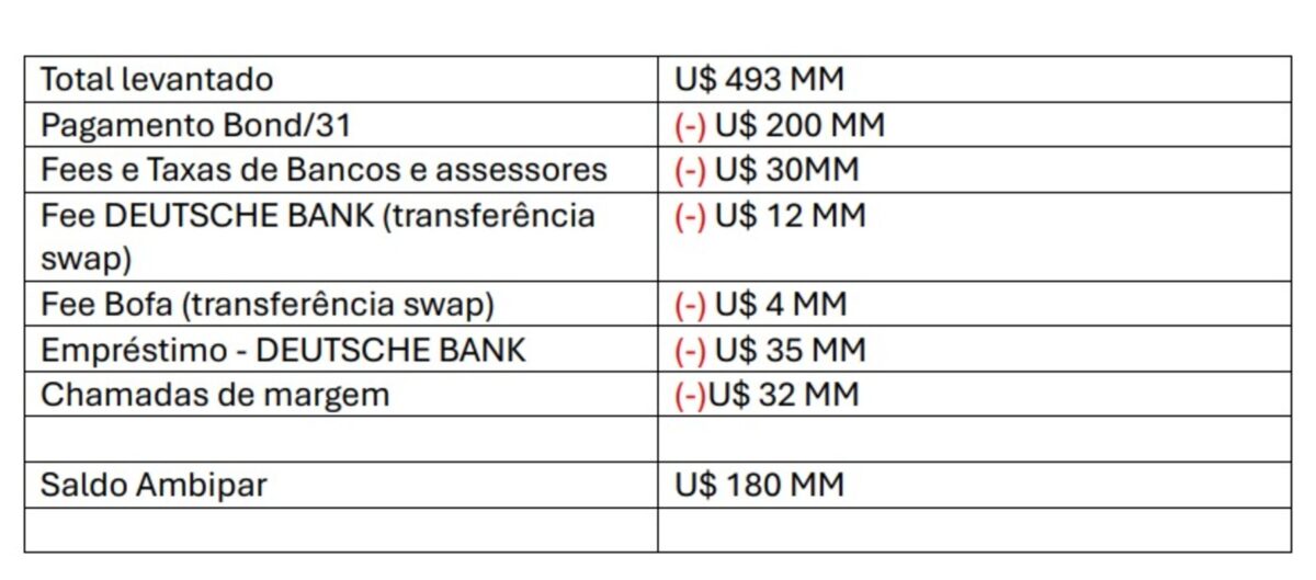 Ainda em março deste ano, Arruda negociou um aditivo. Ele contratou um empréstimo de US$ 35 milhões junto ao Deutsche Bank com o objetivo de modificar o contrato de hedge para incluir o PIK bond. Para a Ambipar, isso significou um custo adicional de R$ 80 milhões. Em agosto, o aditivo foi assinado – e a partir daí o Deutsche passou a usar a margem positiva do hedge de 2031 para compensar chamadas de margem do PIK Bond.