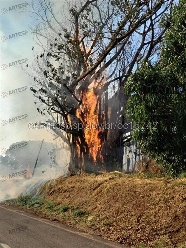 Segundo o Centro de Controle de Informações (CCi) da Agência Reguladora de Serviços Públicos Delegados de Transporte do Estado de São Paulo (Artesp), havia um incêndio no local, que se propagou para a árvore no canteiro lateral da pista.