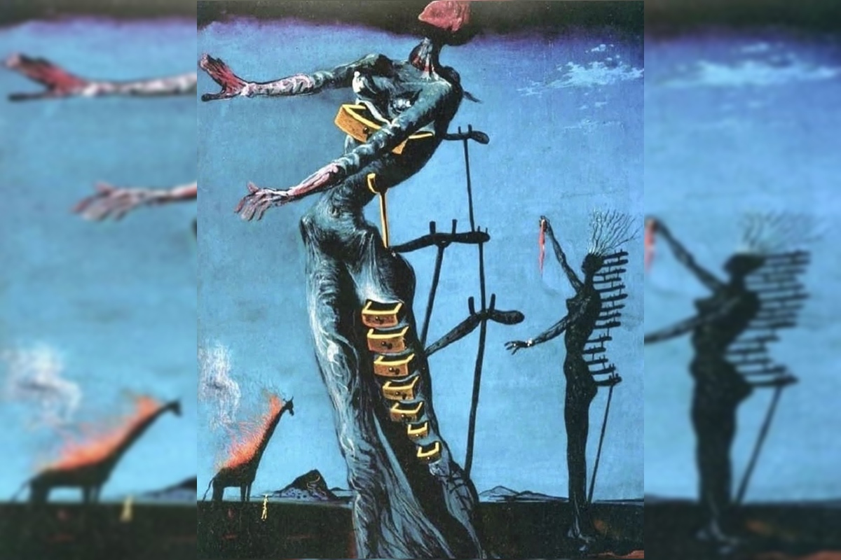 “uma paisagem surreal com elementos deslocados da realidade”. Escolhi, para ilustrar essa crônica, uma obra de arte do mais amalucado dos surrealistas, Salvador Dali.
