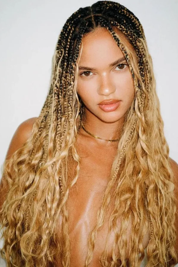 As box braids tradicionais continuam muito procuradas, pois são versáteis, estilosas e combinam com diversos estilos pessoais. Mas, no momento, a tracista afirma que a grande tendência é justamente a combinação das tranças com cachos soltos nas pontas.