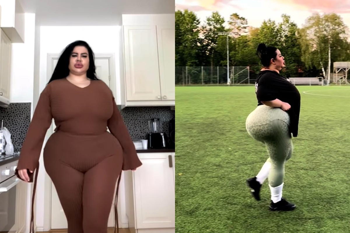 “Desde então, quis ter o maior do mundo. E amo o que me tornei. Ainda não cheguei onde quero, mas estou no caminho”, comentou. Com 1,85m de altura, ela estima que já aumentou o peso do bumbum em mais de 45 quilos e tem planos de chegar a 2,5 metros de circunferência.