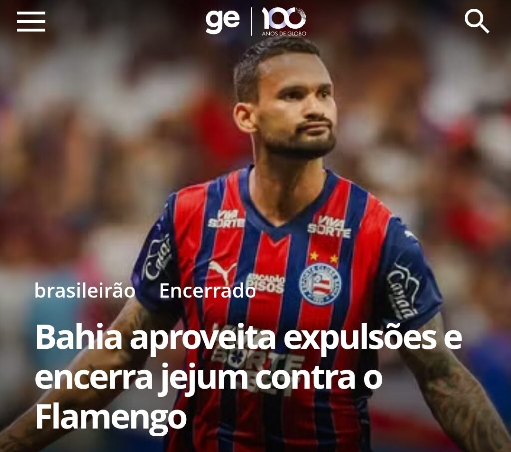 Bahia bateu o Flamengo por 1 a 0 na Fonte Nova e pôs fim a uma sequência de 12 jogos sem vencer o adversário carioca, neste domingo, pelo Brasileirão. Com a expulsão de Danilo aos 12 minutos, o time de Rogério Ceni assumiu o controle da partida e abriu o placar ainda no primeiro tempo com Willian José. O Rubro-Negro teve momentos de reação, chegou perto de empate mas viu as esperanças caírem quando Wallace Yan, que havia acabado de entrar no jogo, recebeu dois cartões amarelos e foi expulso, deixando o time com oito jogadores.