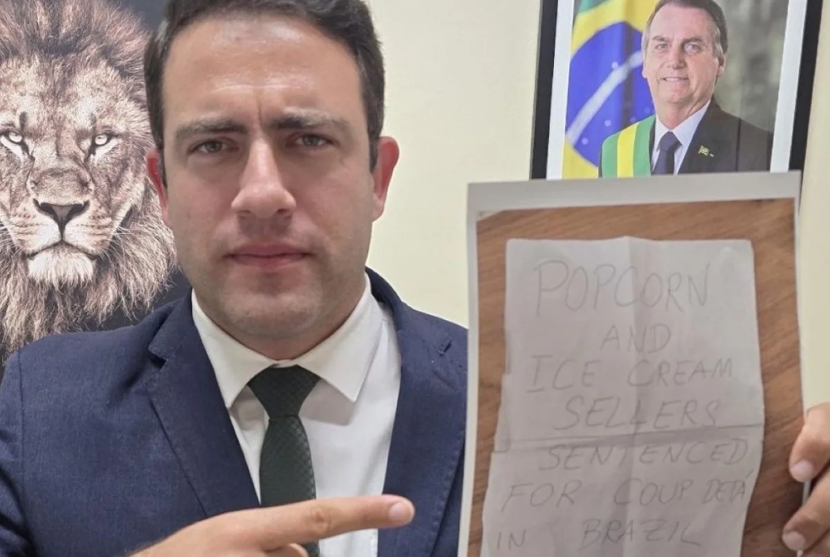 Em abril, o deputado foi o responsável por traduzir para o inglês o trecho do discurso de Bolsonaro em evento na Avenida Paulista, no qual criticava a condenação de um pipoqueiro e de um sorveteiro por tentativa de golpe de Estado no 8 de Janeiro.