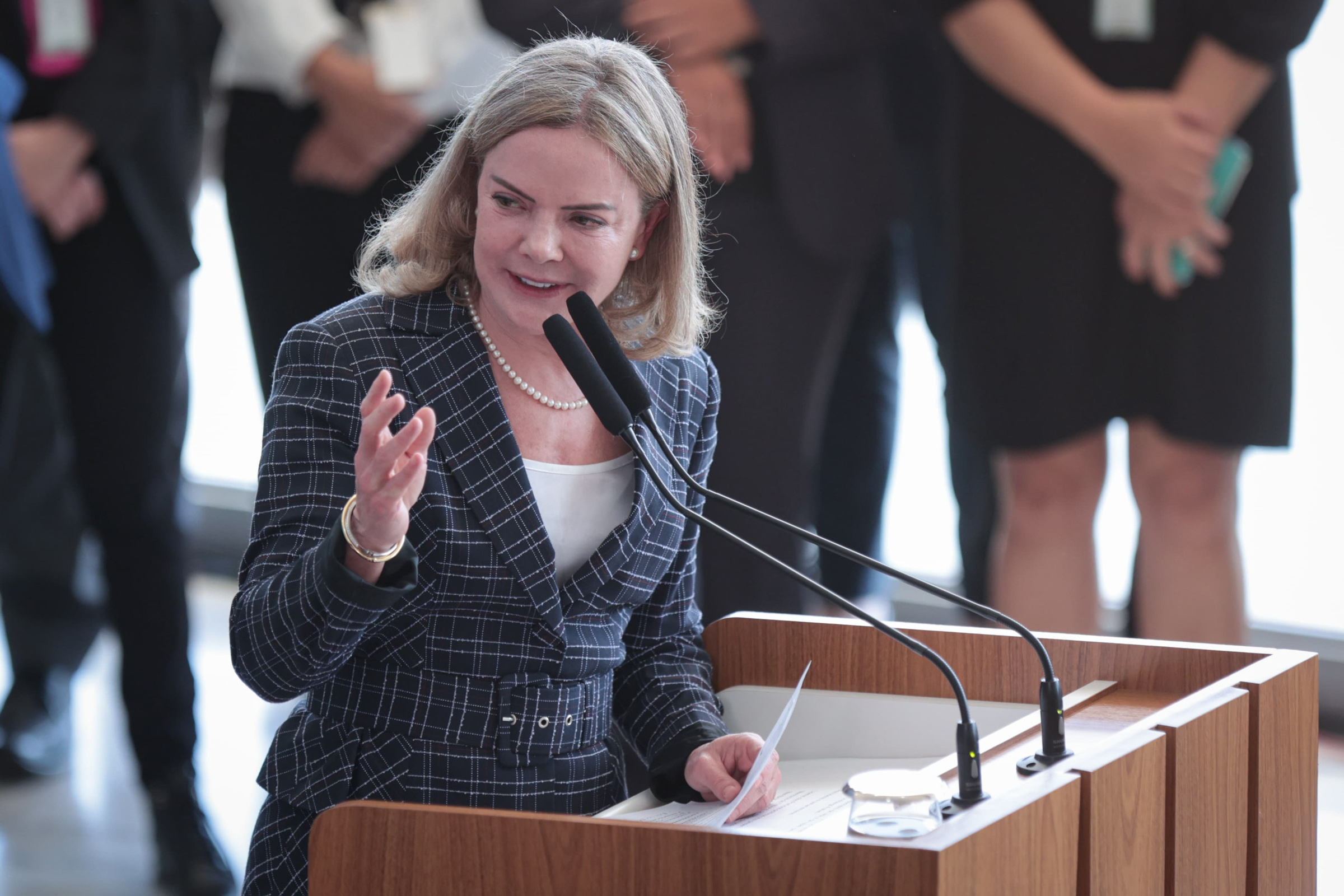 A ministra de Relações Institucionais, Gleisi Hoffmann, chamou ministros para traçar estratégia contra a anistia do 8/1