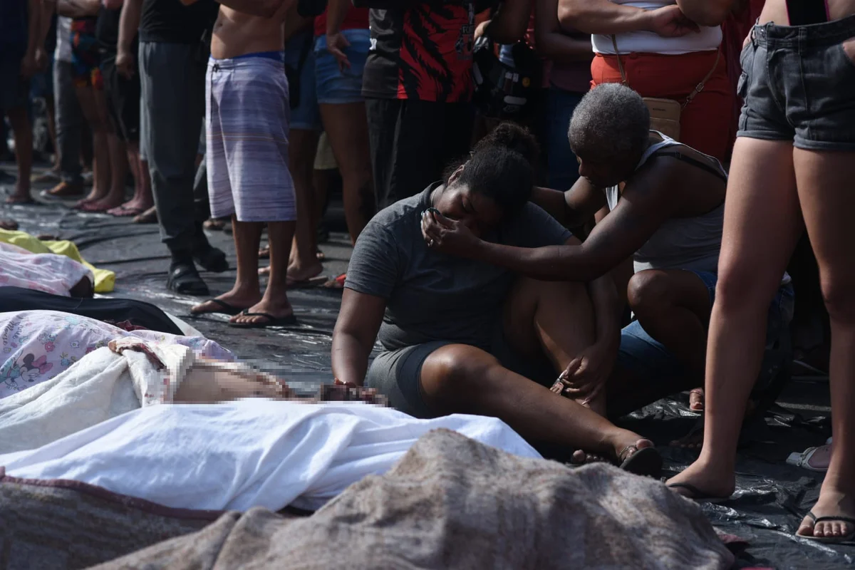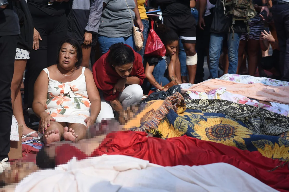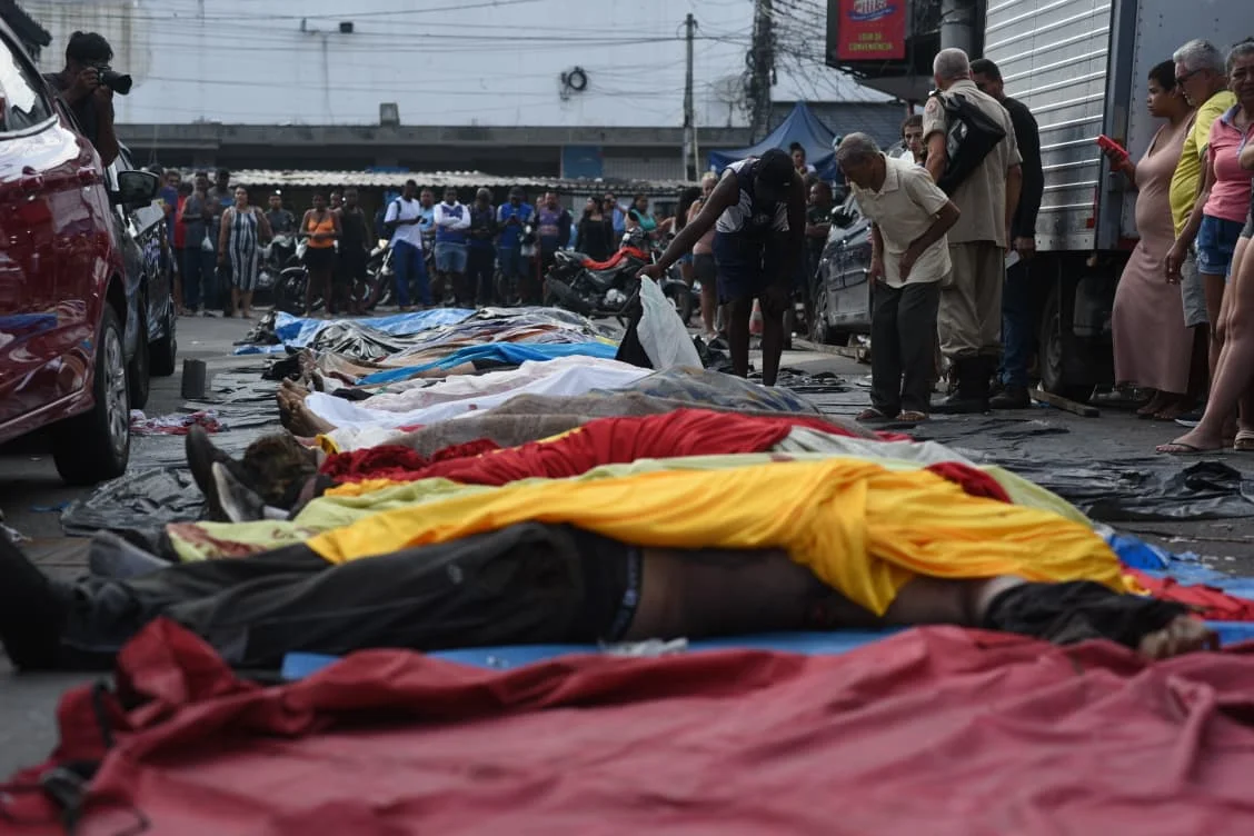 Amanhecer de horror na Penha: moradores exibem corpos em praça pública